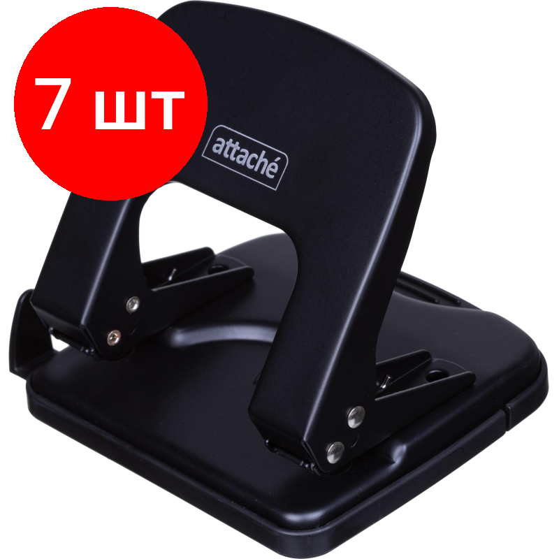 Комплект 7 штук, Дырокол Attache Economy до 25 листов, с линейкой, металл, черный информация: