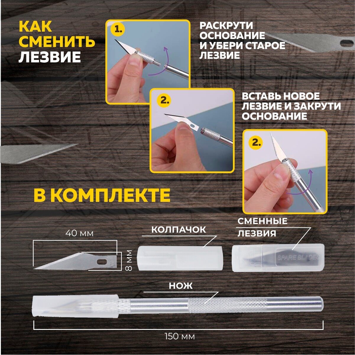 Ручка и лезвия №11 ювелирные для моделирования, для макетирования, скальпель, макетный нож