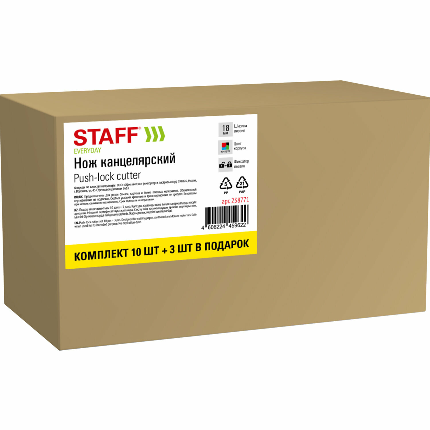 Нож канцелярский строительный универсальный набор 13 штук, ширина лезвия 18 мм, фиксатор, Staff Everyday, 238771 информация: