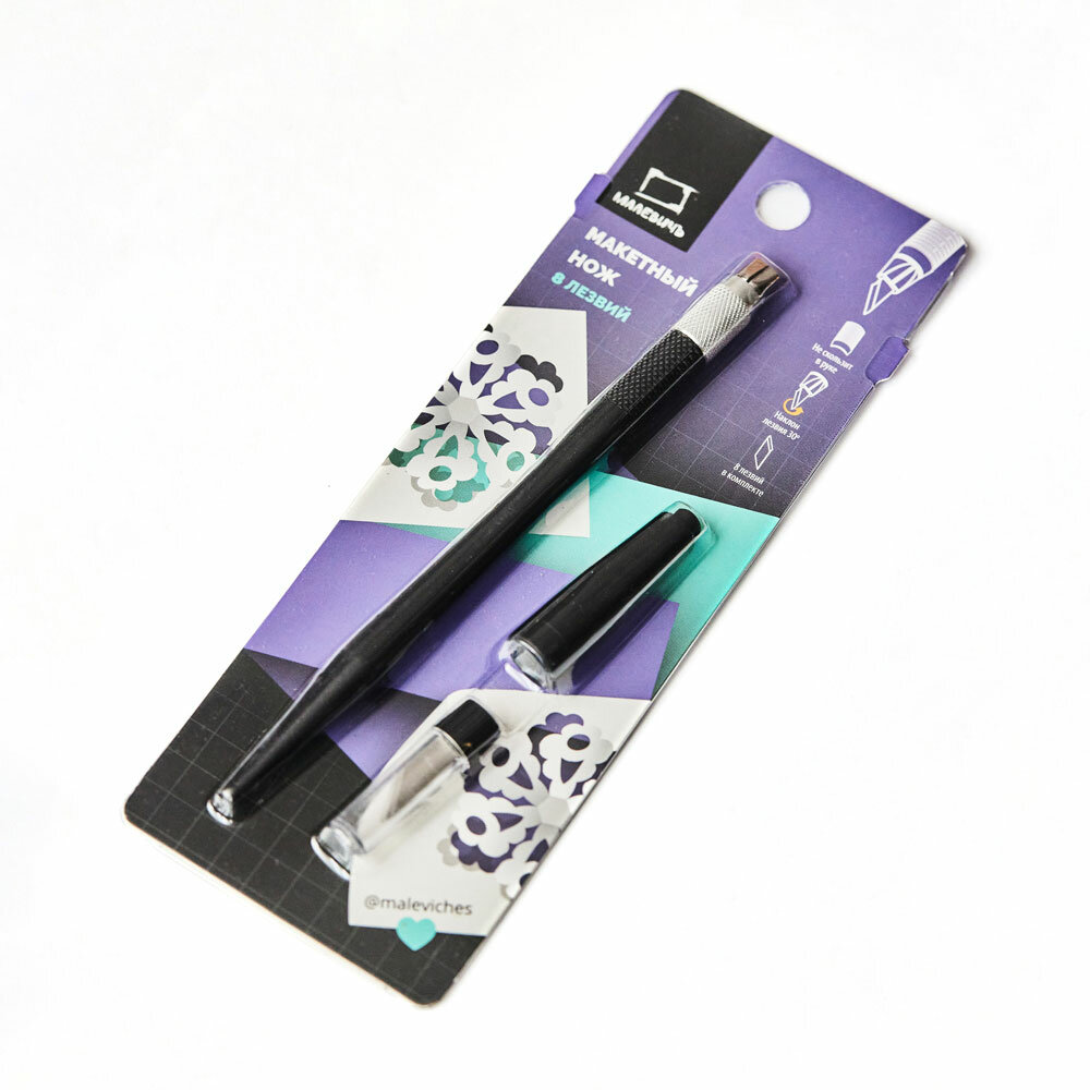 Отзывы на Макетный нож Малевичъ с 8 сменными лезвиями, канцелярский нож скальпель черный