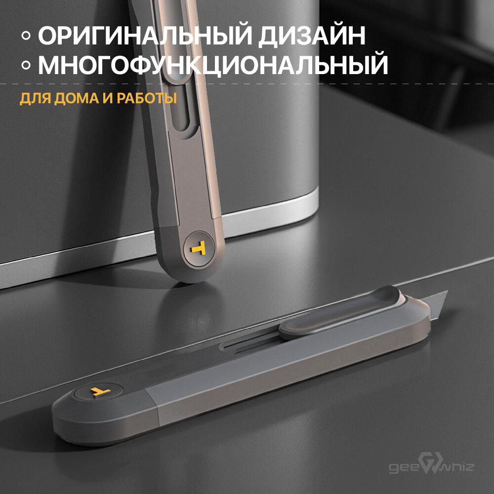 Трапециевидный канцелярский нож универсальный для резки бумаги, картона, линолеума с автовозвратом / Комплект сменных лезвий 10 штук информация: