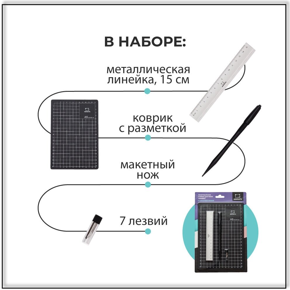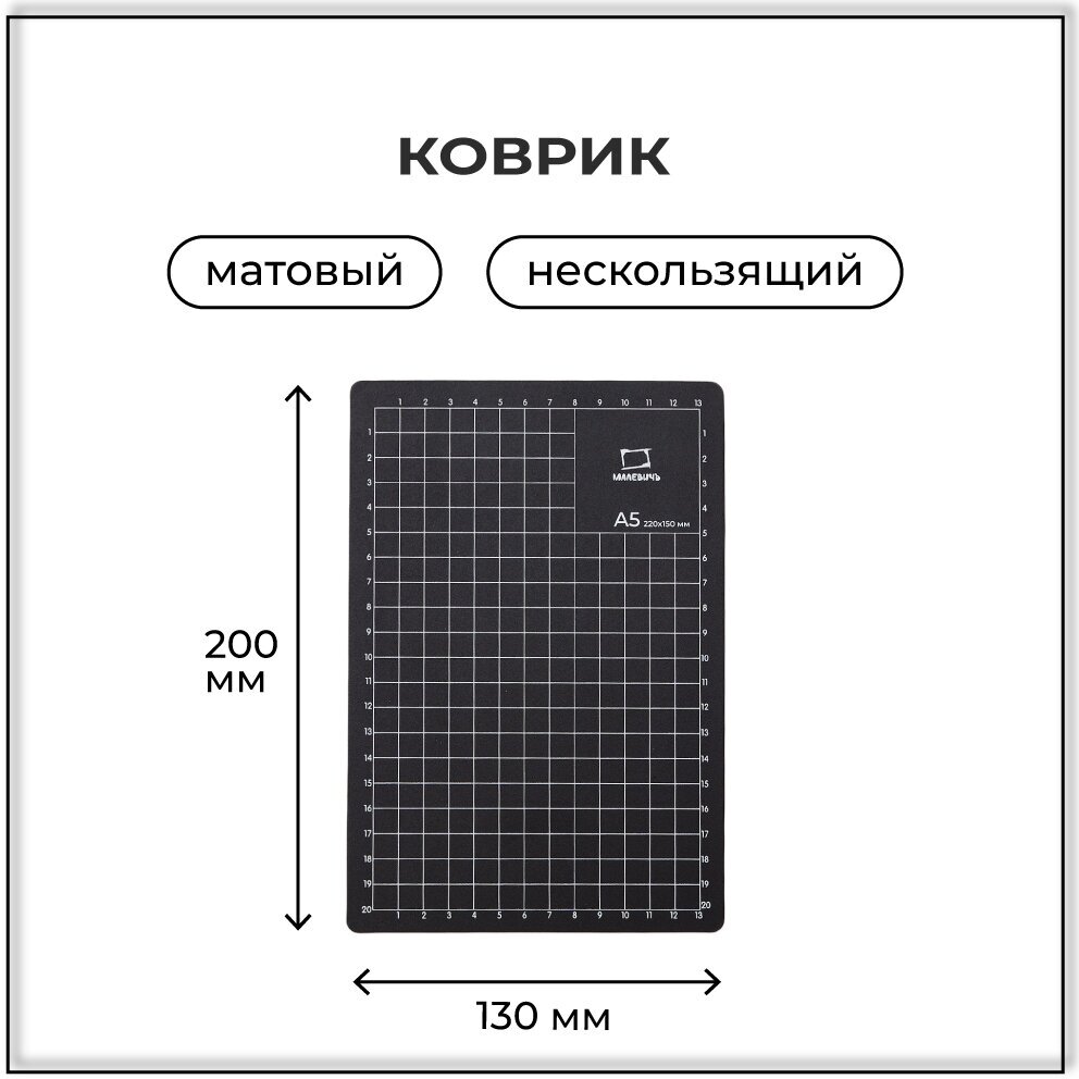 Набор для вырезания Малевичъ, макетный нож, коврик для резки, линейка информация: