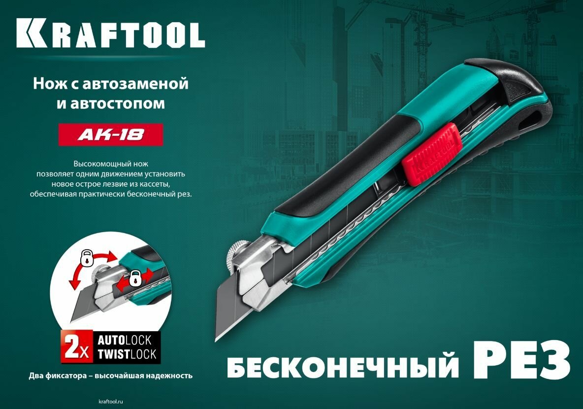 Нож 18мм KRAFTOOL Professional 09193 с сегментированным лезвием и автофиксацией информация: