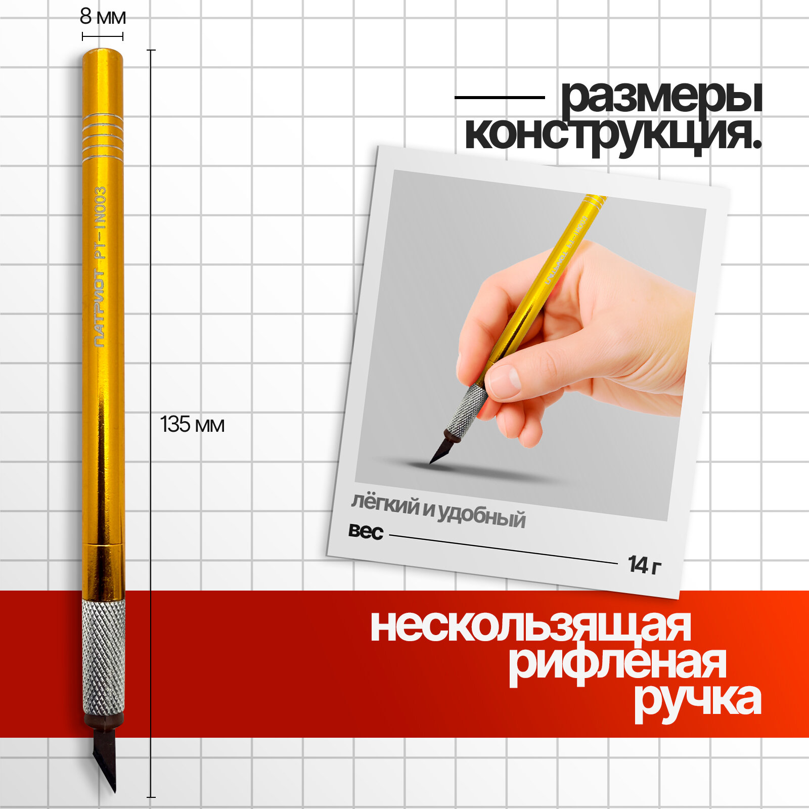 Макетный нож скальпель канцелярский со сменными лезвиями Патриот PT-INO03 информация: