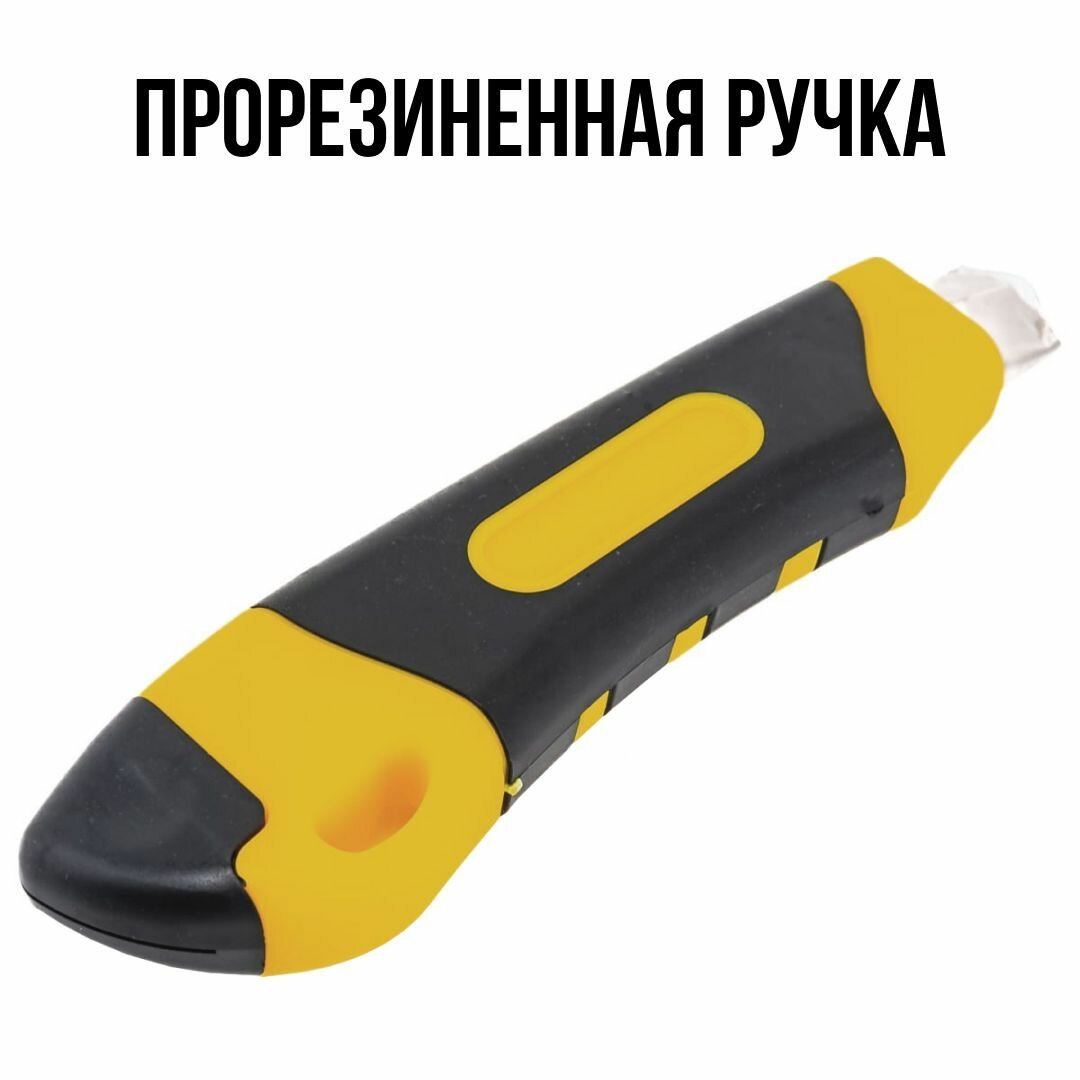 FIT Канцелярский нож строительный с запасными сегментированными лезвиями 18 мм, ударопрочный прорезиненный
