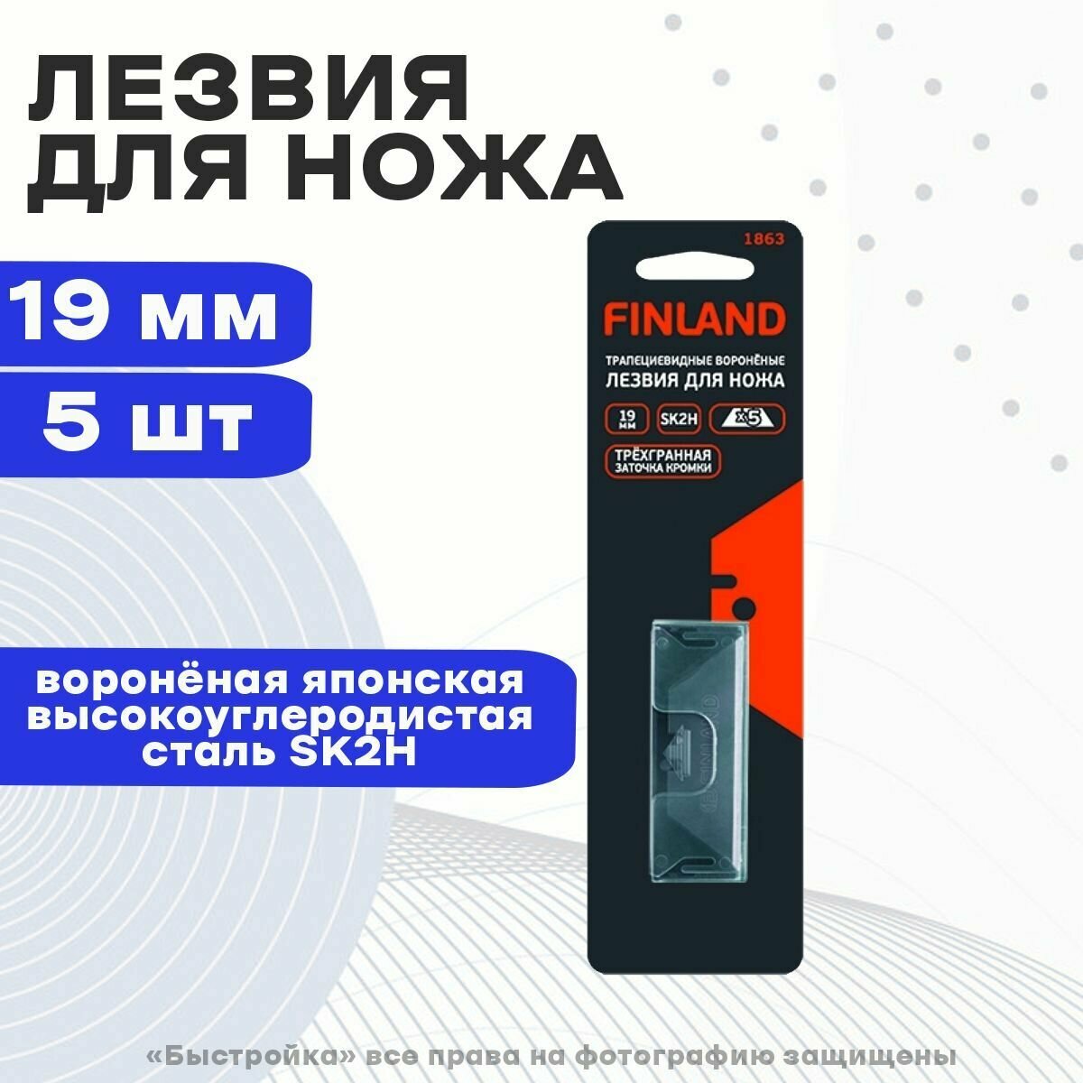 Лезвия для ножа FINLAND 1863, 19 мм трапециевидные вороненые (5 штук) информация: