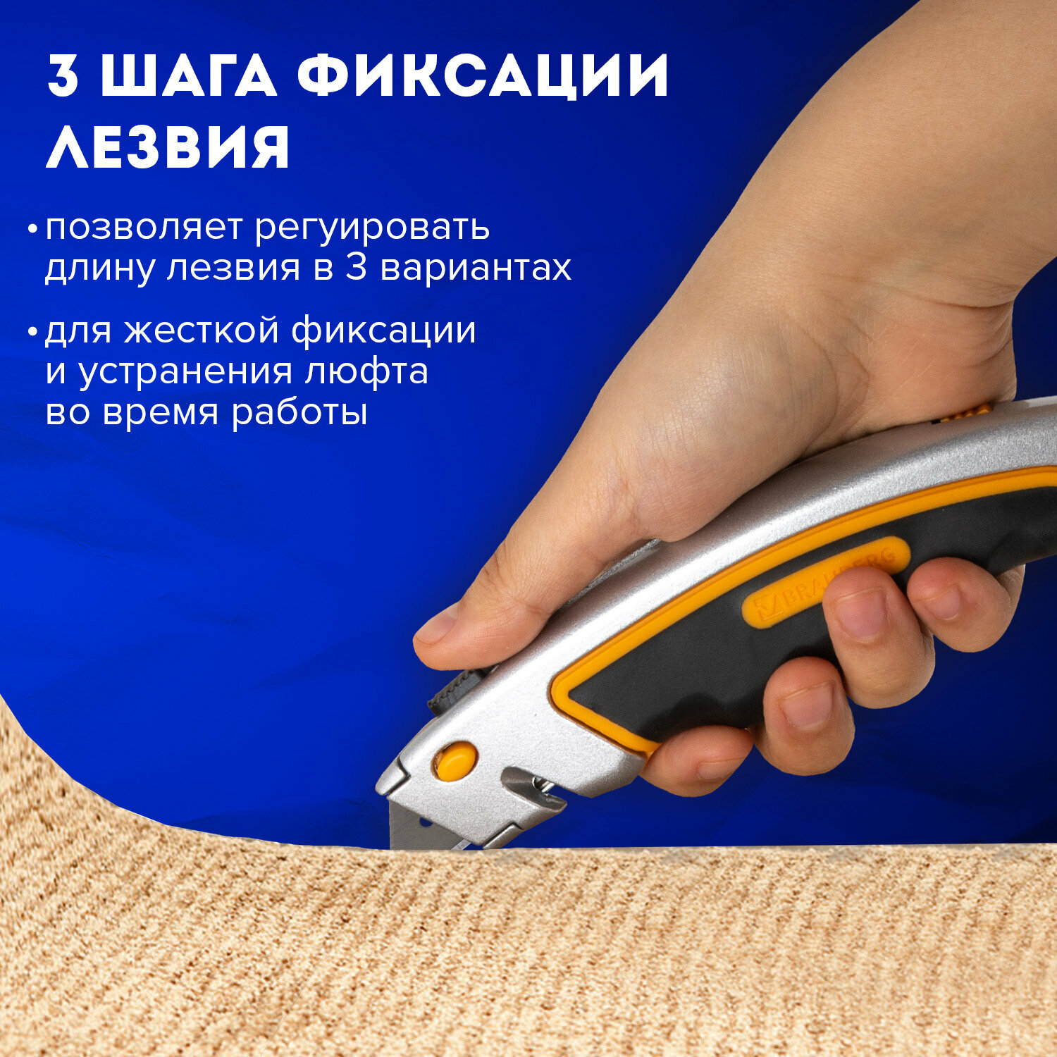 10 цен на Нож канцелярский строительный универсальный мощный, ширина лезвия 18 мм, автофиксатор, алюминиевый, резиновые вставки, Brauberg Heavy duty, 238735