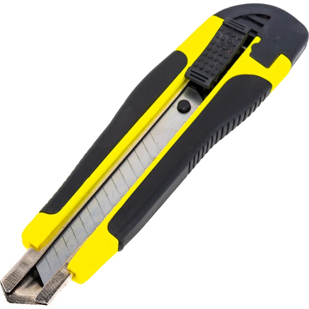 Нож технический 18 мм усиленный прорезиненный, 2-х сторонняя автофиксация 10247