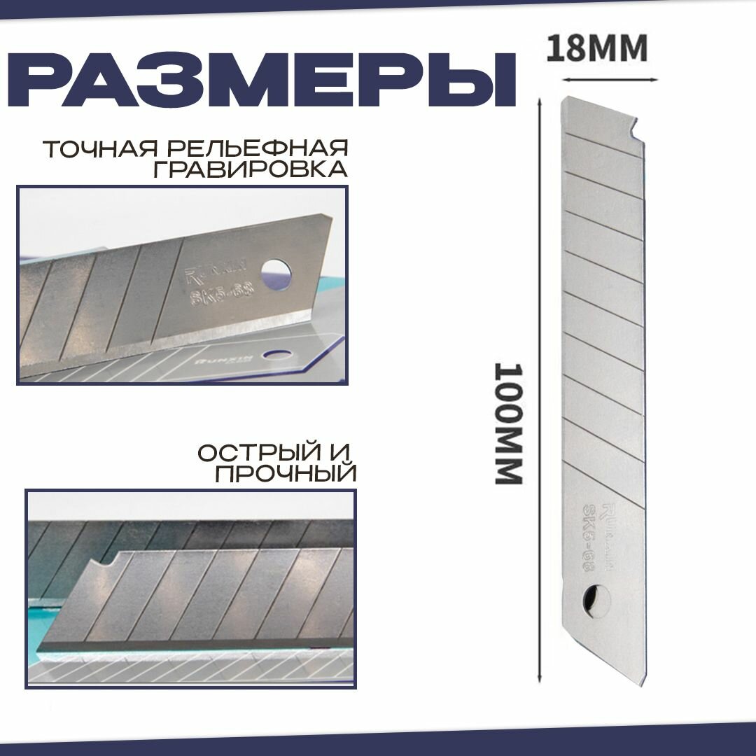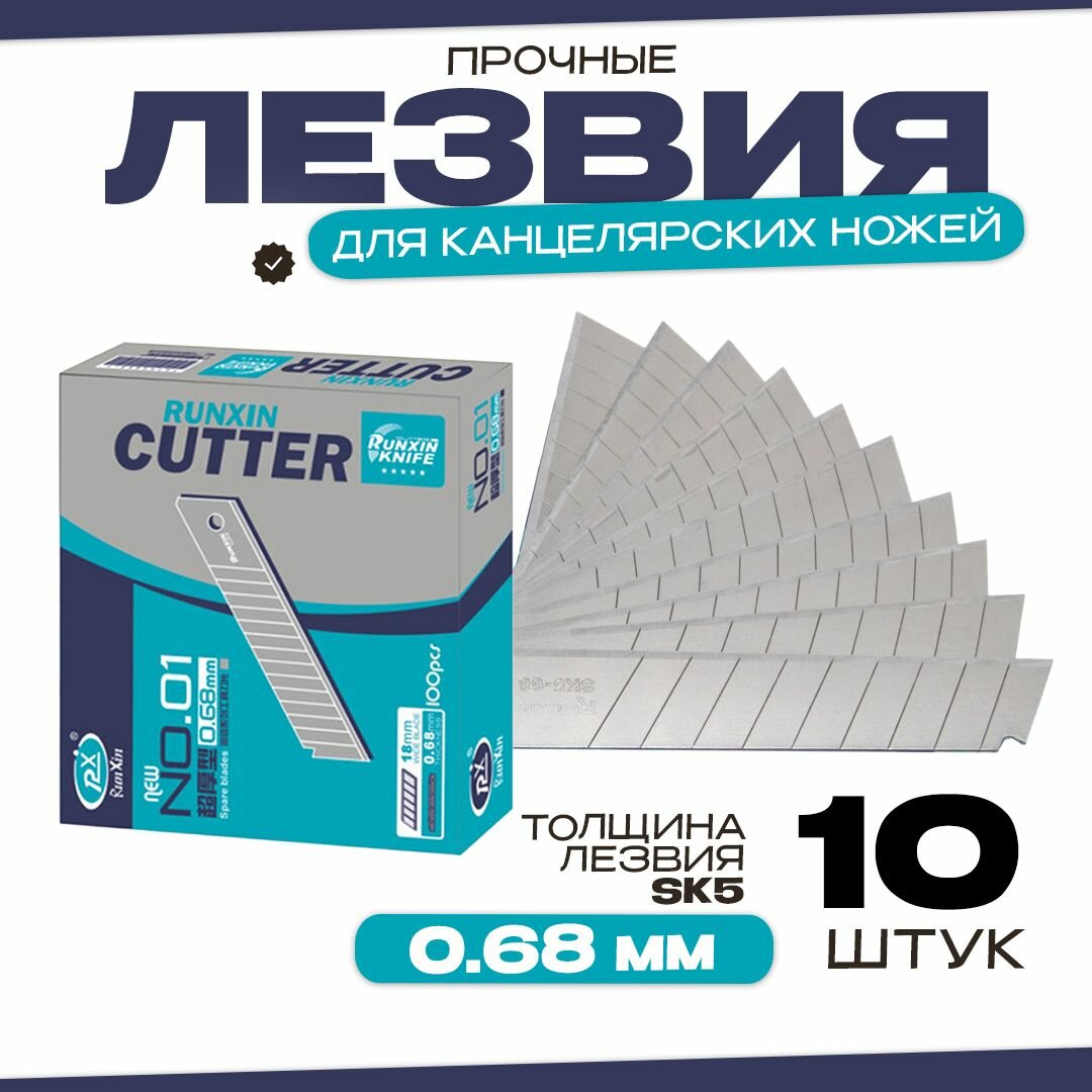 Лезвия Runxin для канцелярских и строительных ножей, 18мм, сталь SK5, набор 10 штук информация: