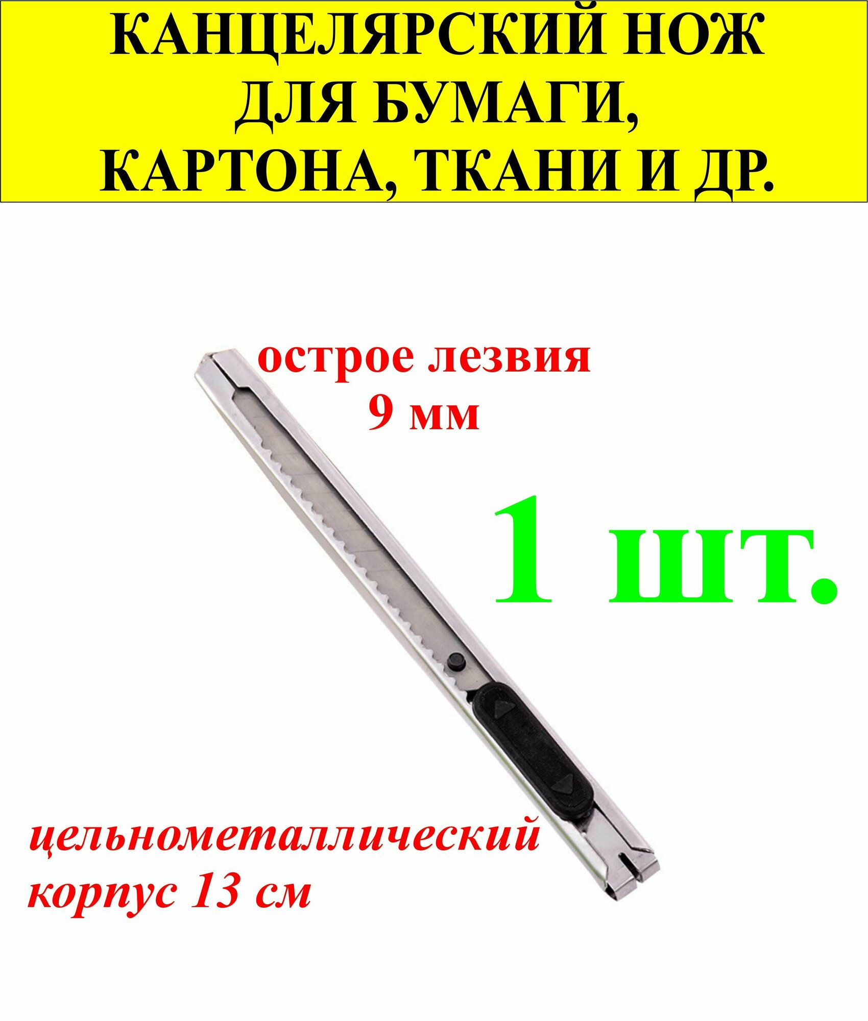 10 цен на Канцелярский нож 1 шт, ширина лезвия 9мм, сталь, корпус 13см.
