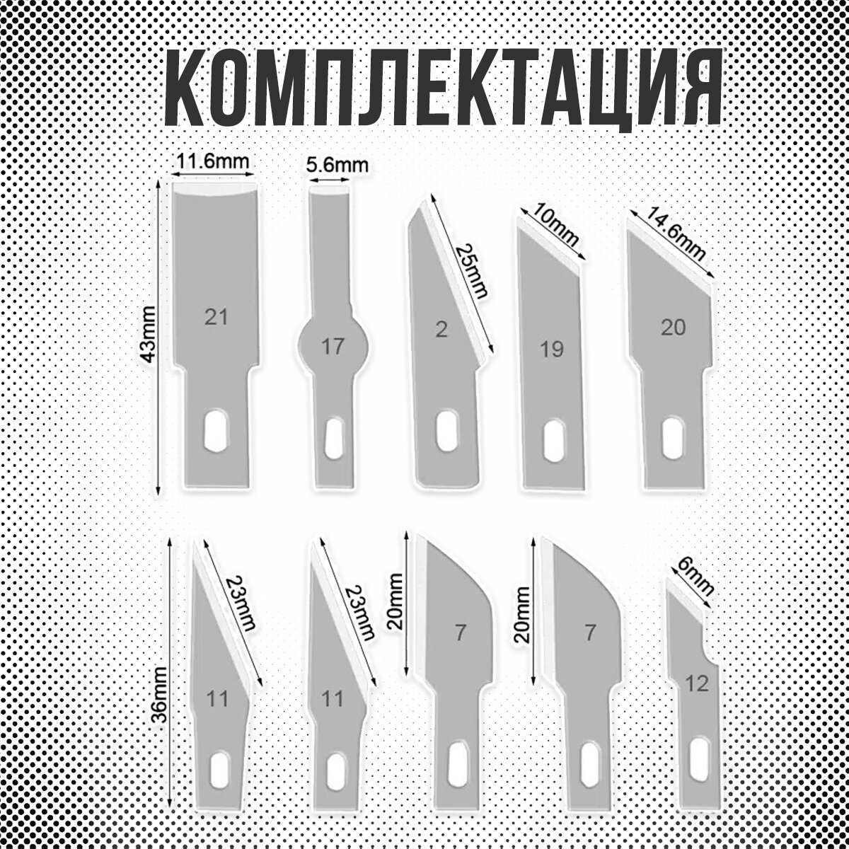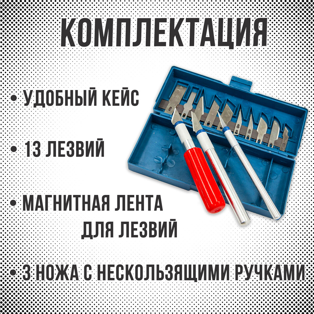Нож моделиста, 13 лезвий/ раскройный, макетный нож/ канцелярский скальпель для творчества и моделирования информация: