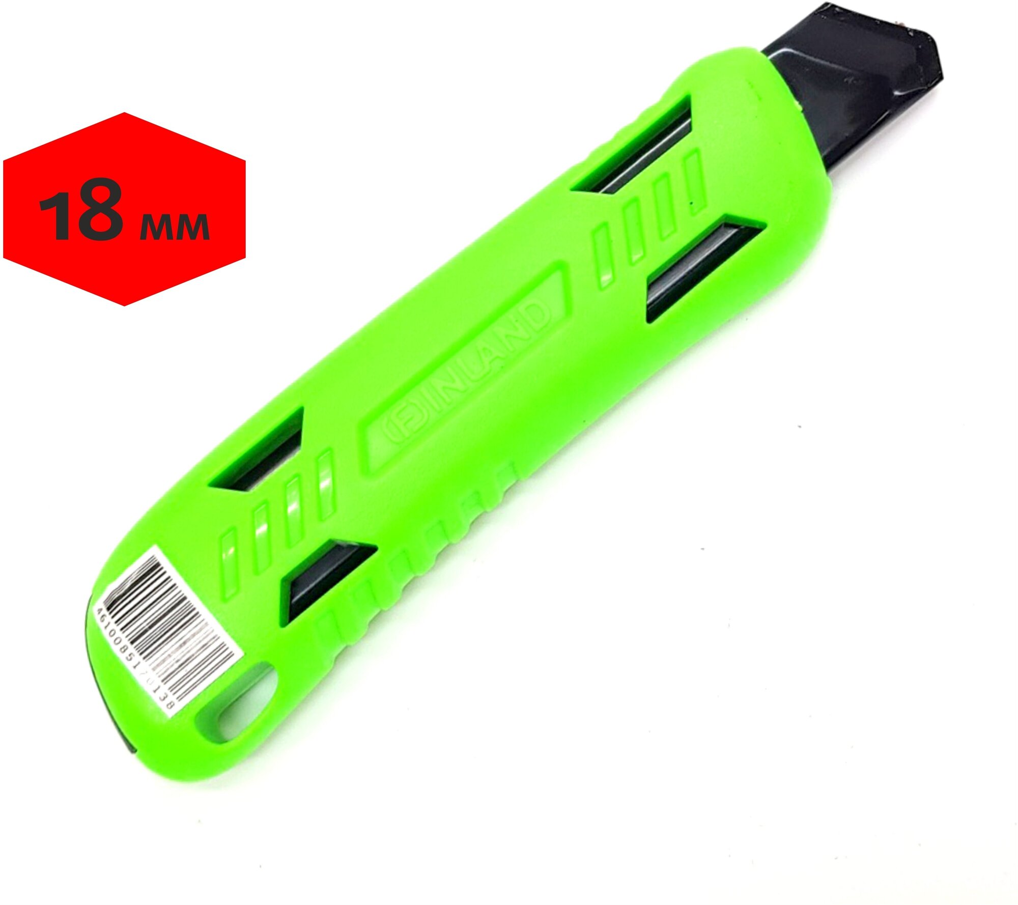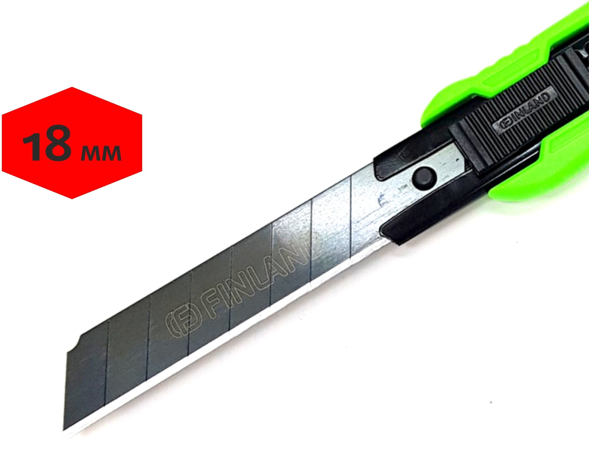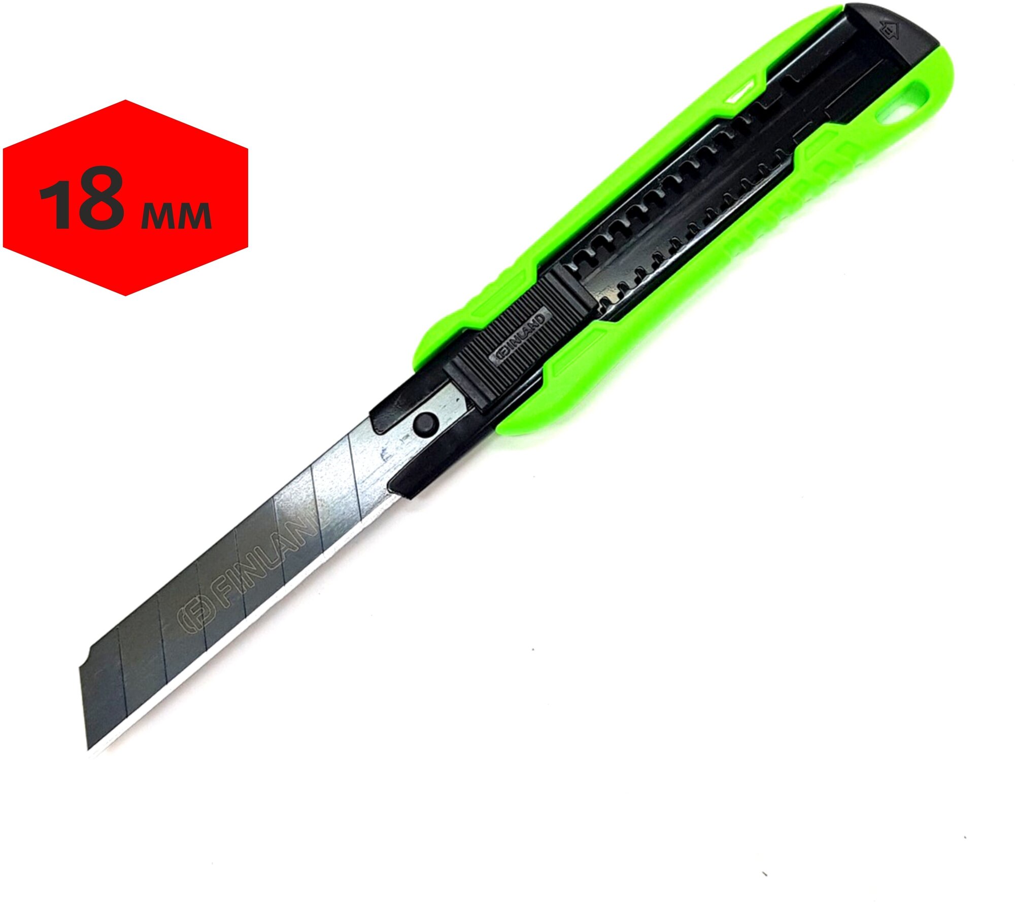 Нож строительный, канцелярский ширина лезвия 18мм FINLAND зеленый информация: