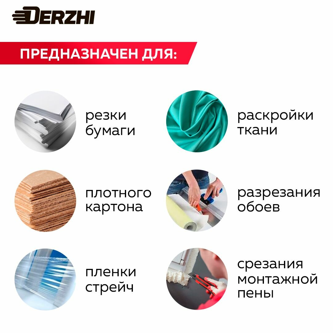 10 цен на Нож канцелярский строительный DERZHI "мастер" 25 мм с выдвижным сегментированным лезвием , обрезиненный корпус