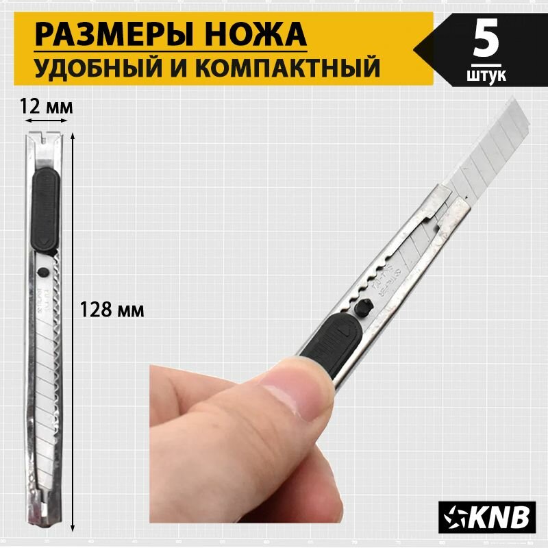 Набор 5 штук: Нож канцелярский KNB металлический с выдвижным 9 мм сегментированным лезвием, автофиксатор информация: