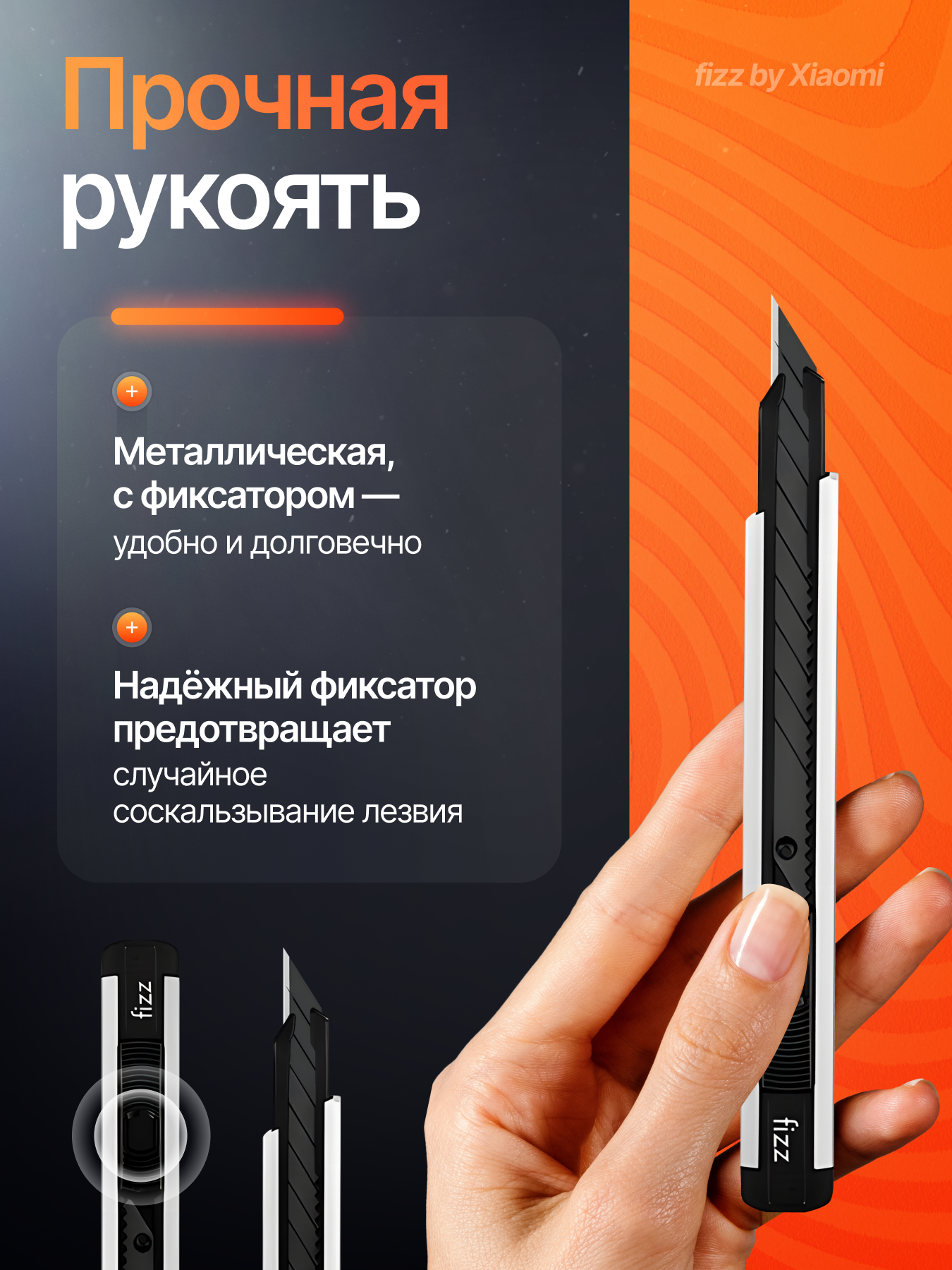 Отзывы на Канцелярский нож острый Xiaomi "Fizz", выдвижное лезвие, серебристый, с 10-ю лезвиями