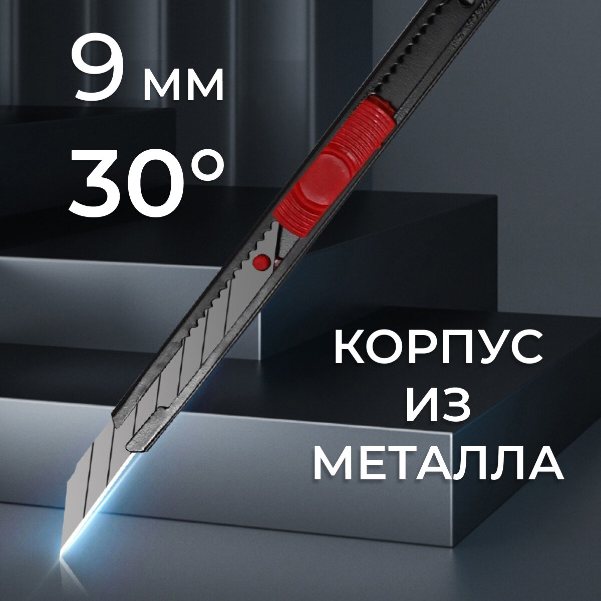 Нож канцелярский, ширина лезвия 9мм, угол 30 градусов информация: