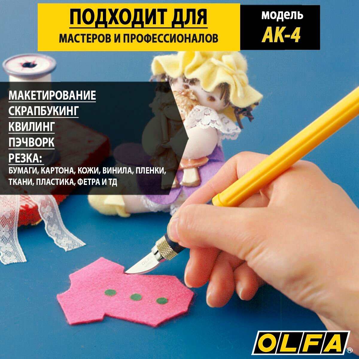 Нож художественный OLFA AK-4 6 мм, 4 сменных профильных лезвия, макетный скальпель канцелярский