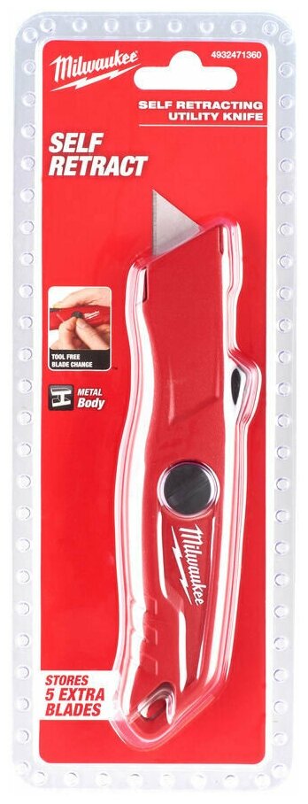Выдвижной нож Milwaukee 4932471360, складной, без стопора, красный, металл информация: