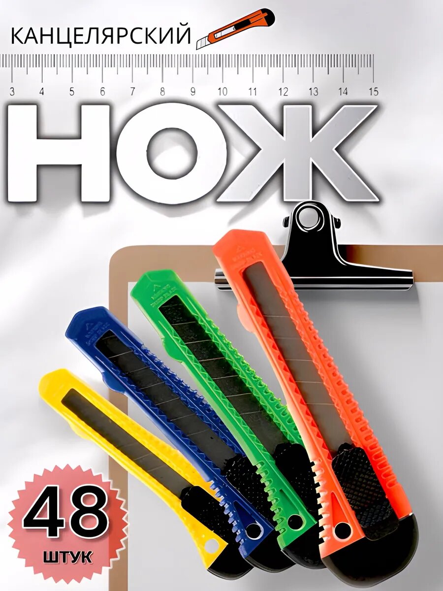 Отзывы на Набор канцелярских ножей, 48 лезвий, выдвижные, пластиковые рукояти, сменные лезвия