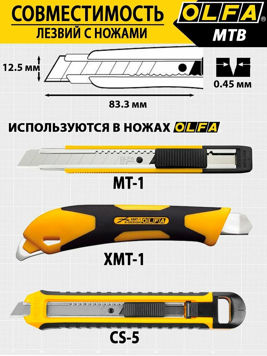 10 цен на Лезвия OLFA MTB-10B для ножей XMT-1 и MT-1 12.5 мм, 10 штук в блистере, сегментированные, инструментальная сталь