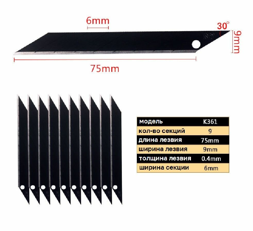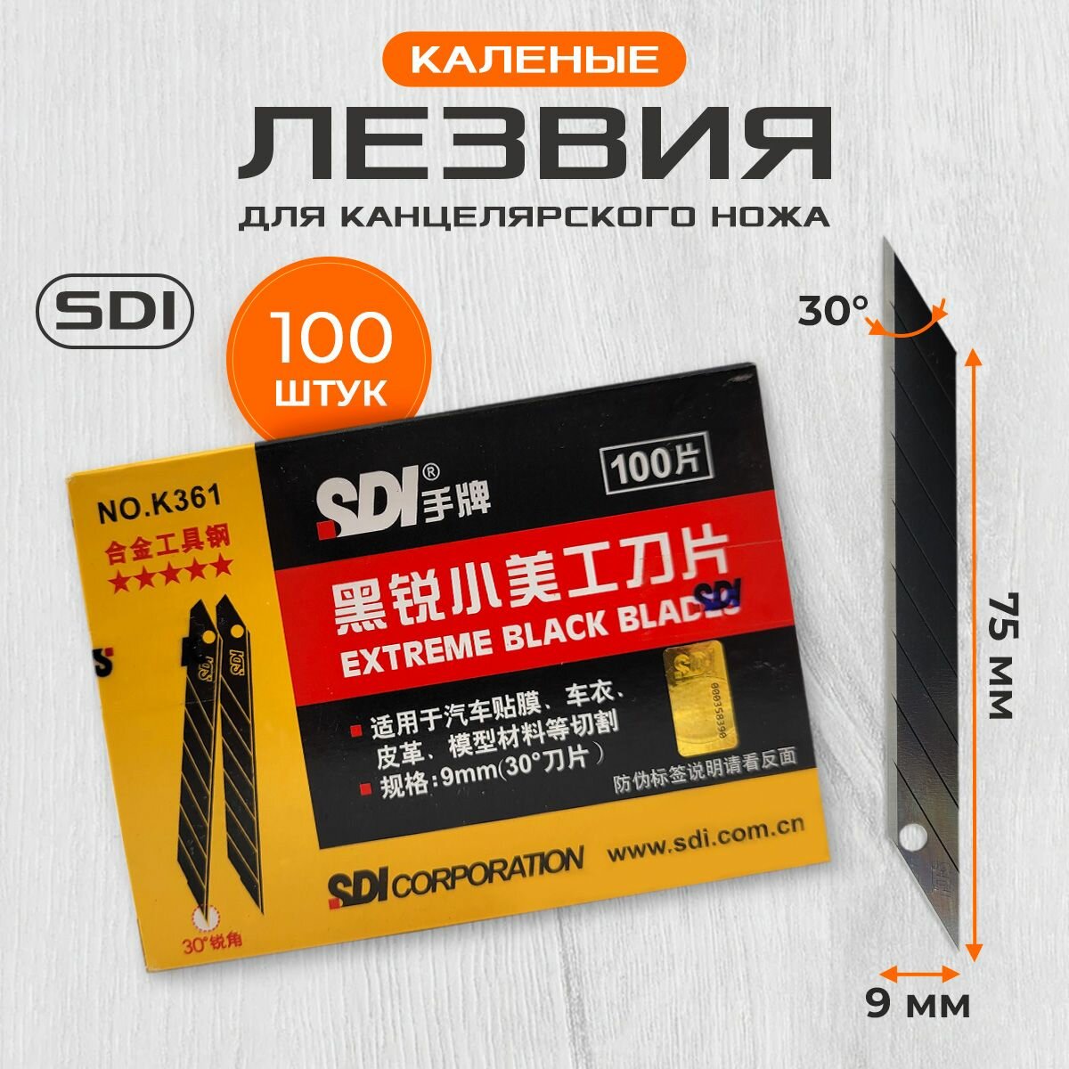 Лезвия SDI черные каленые K361 9 мм 30 град. (100 шт.) для канцелярского ножа информация: