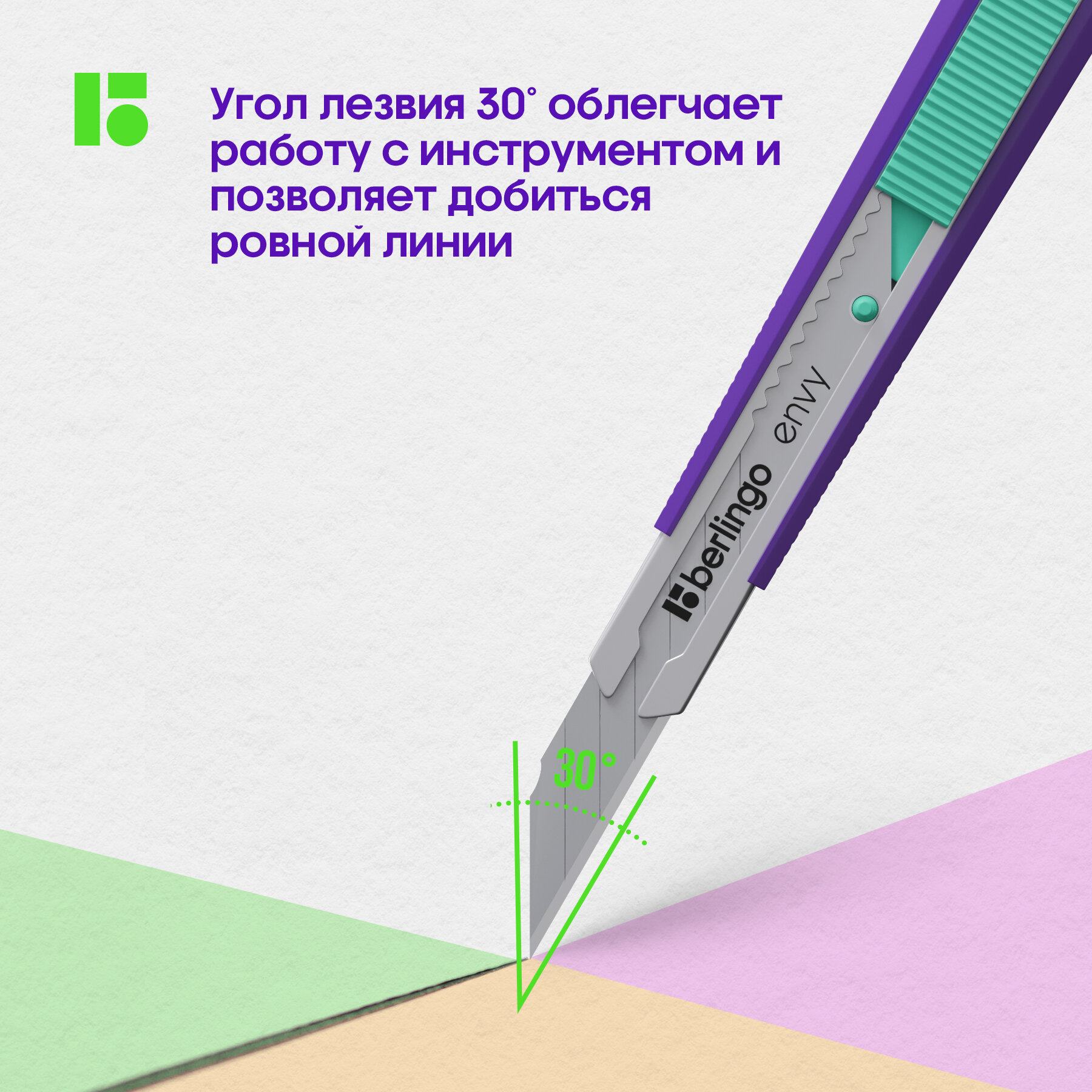 Отзывы на Нож канцелярский 9мм Berlingo "Envy", auto-lock, металл. направл, зеленый, европодвес