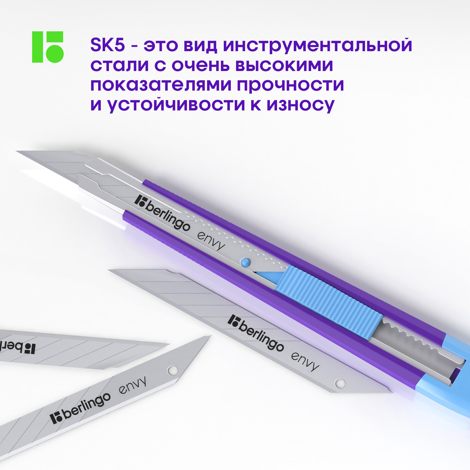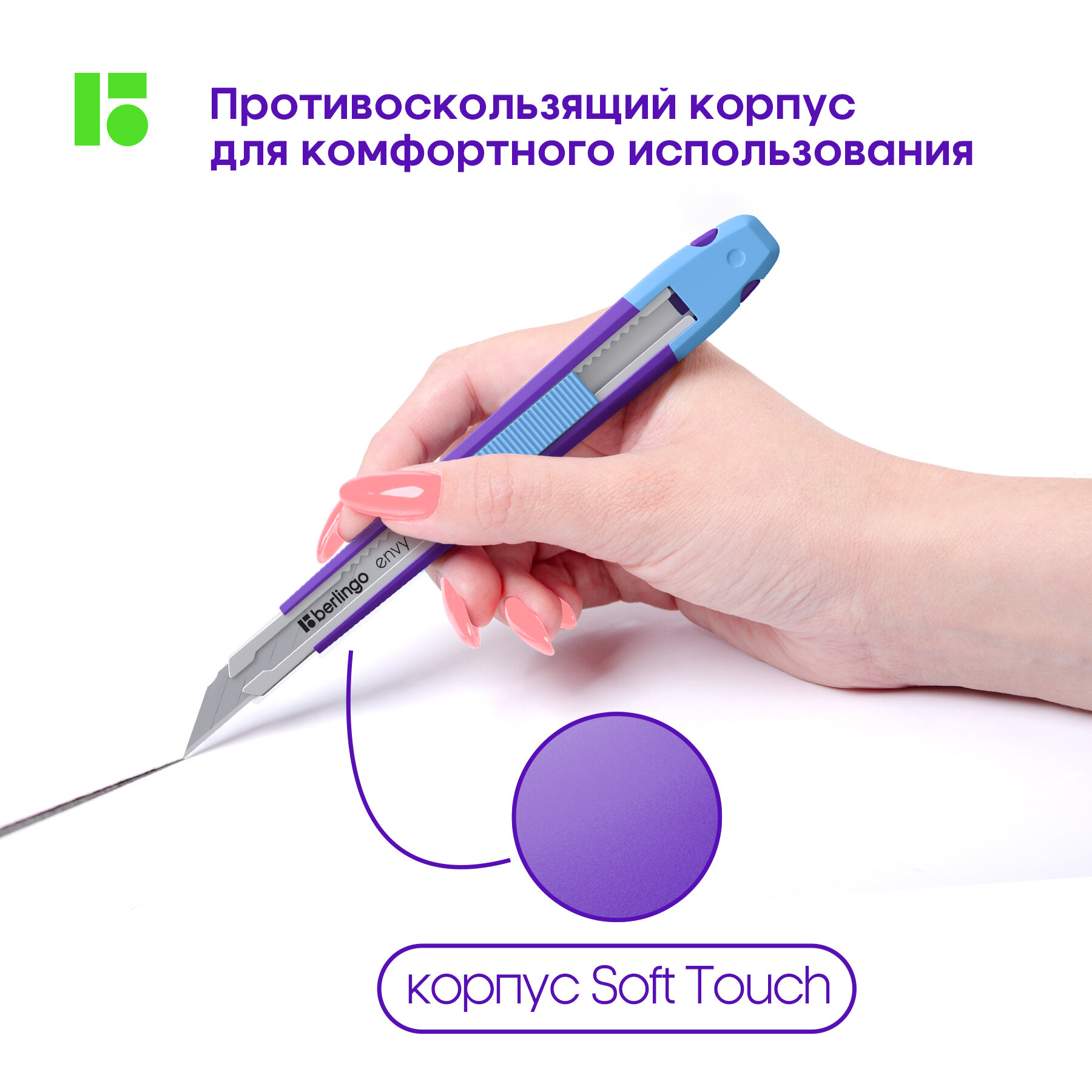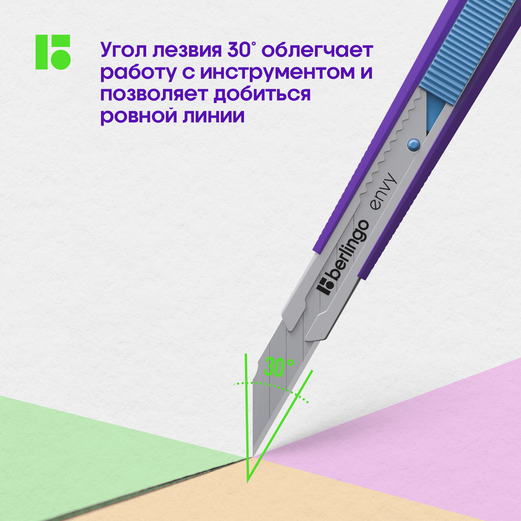 Отзывы на Нож канцелярский 9мм Berlingo Envy, auto-lock, голубой, европодвес