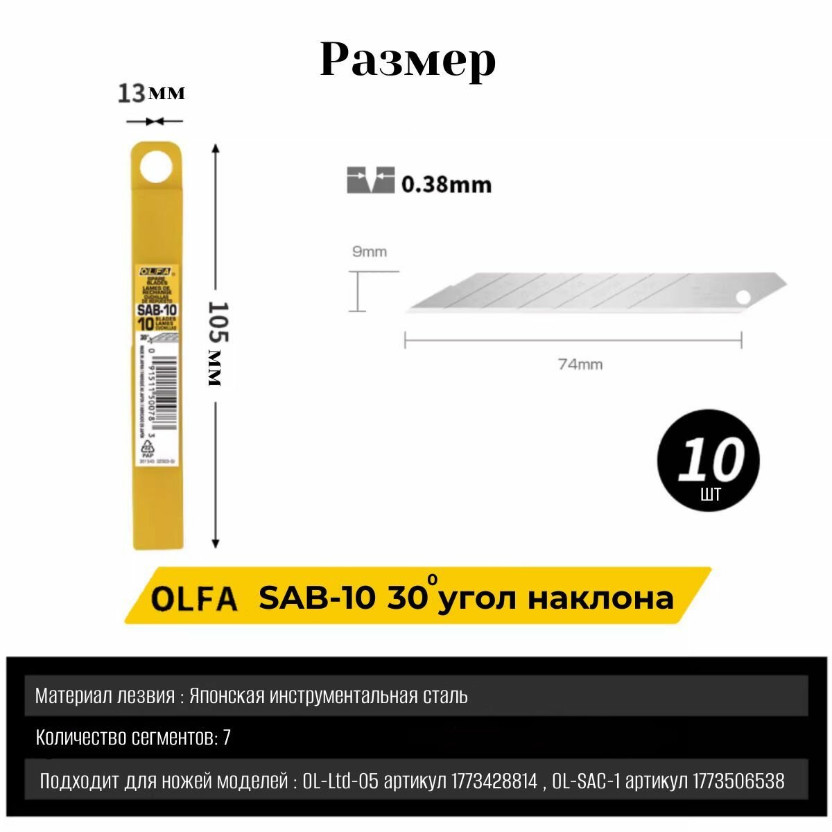 10 цен на Лезвия OLFA SAB-10 9мм 30гр (10шт) сегментированные, для канцелярского и строительного ножа