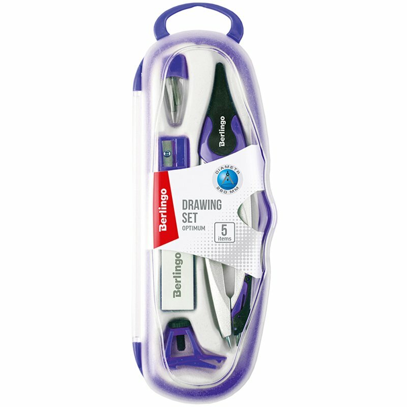 Готовальня 5 предметов Berlingo Optimum, циркуль 135мм, пластиковый футляр, фиолетовый (DS_00505a) информация: