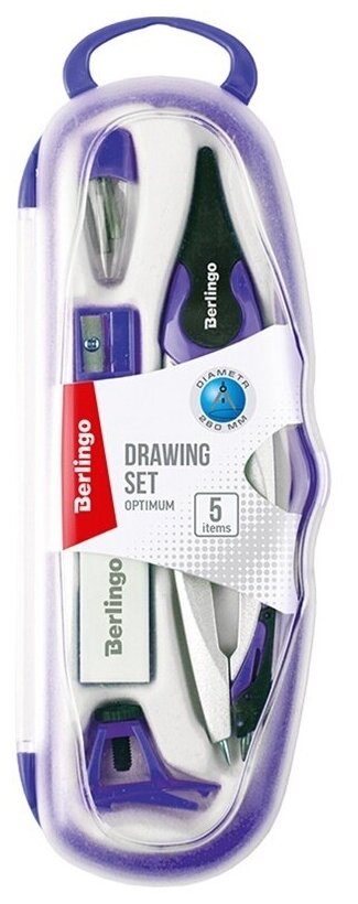 10 цен на Готовальня 5 предметов Berlingo Optimum, циркуль 135мм, пластиковый футляр, фиолетовый (DS_00505a)