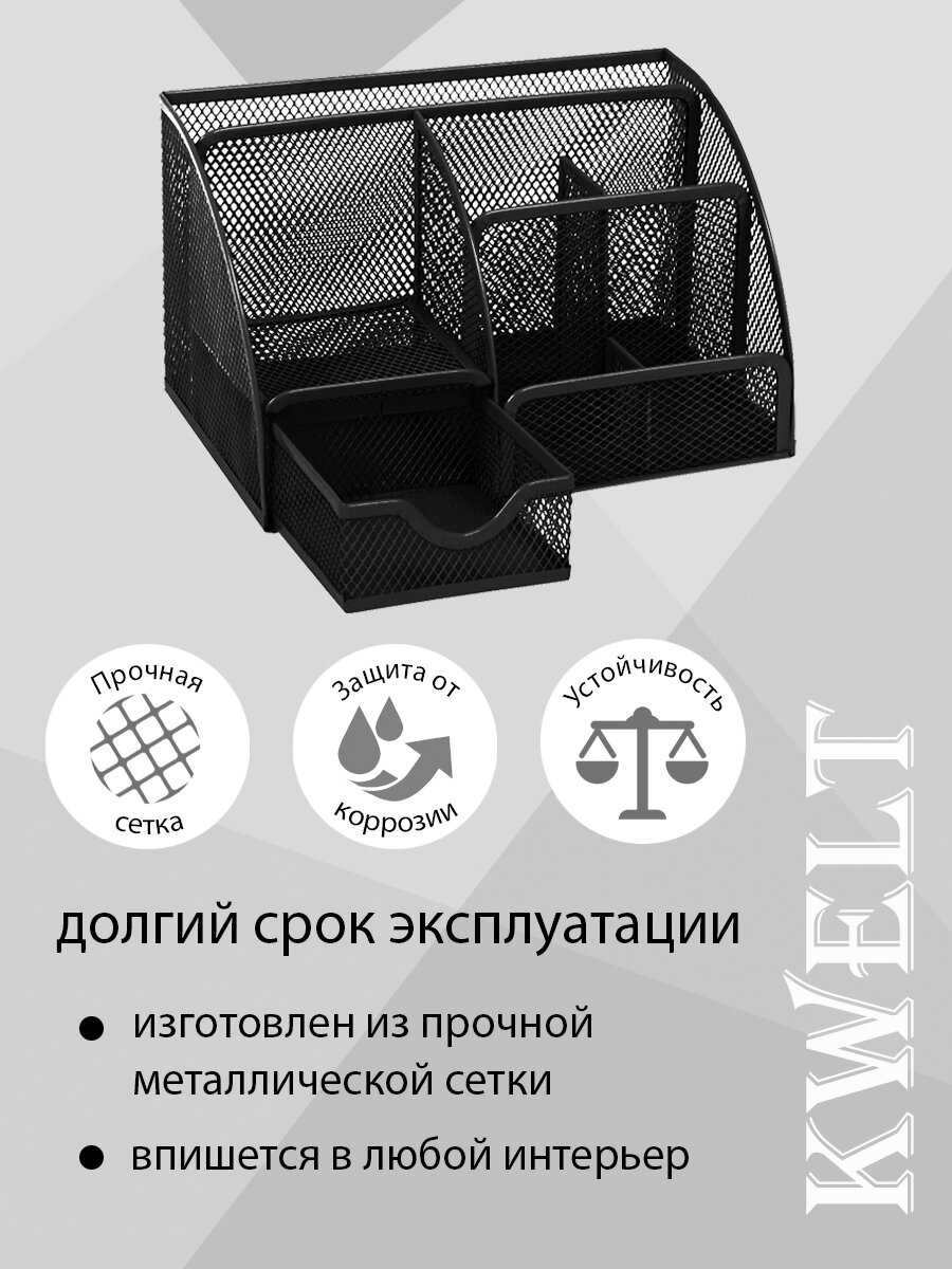 10 цен на Подставка " KWELT " 7 отделений (1 выдвижное), металлическая, сетчатая, черная, картонная упаковка 22*14*13см