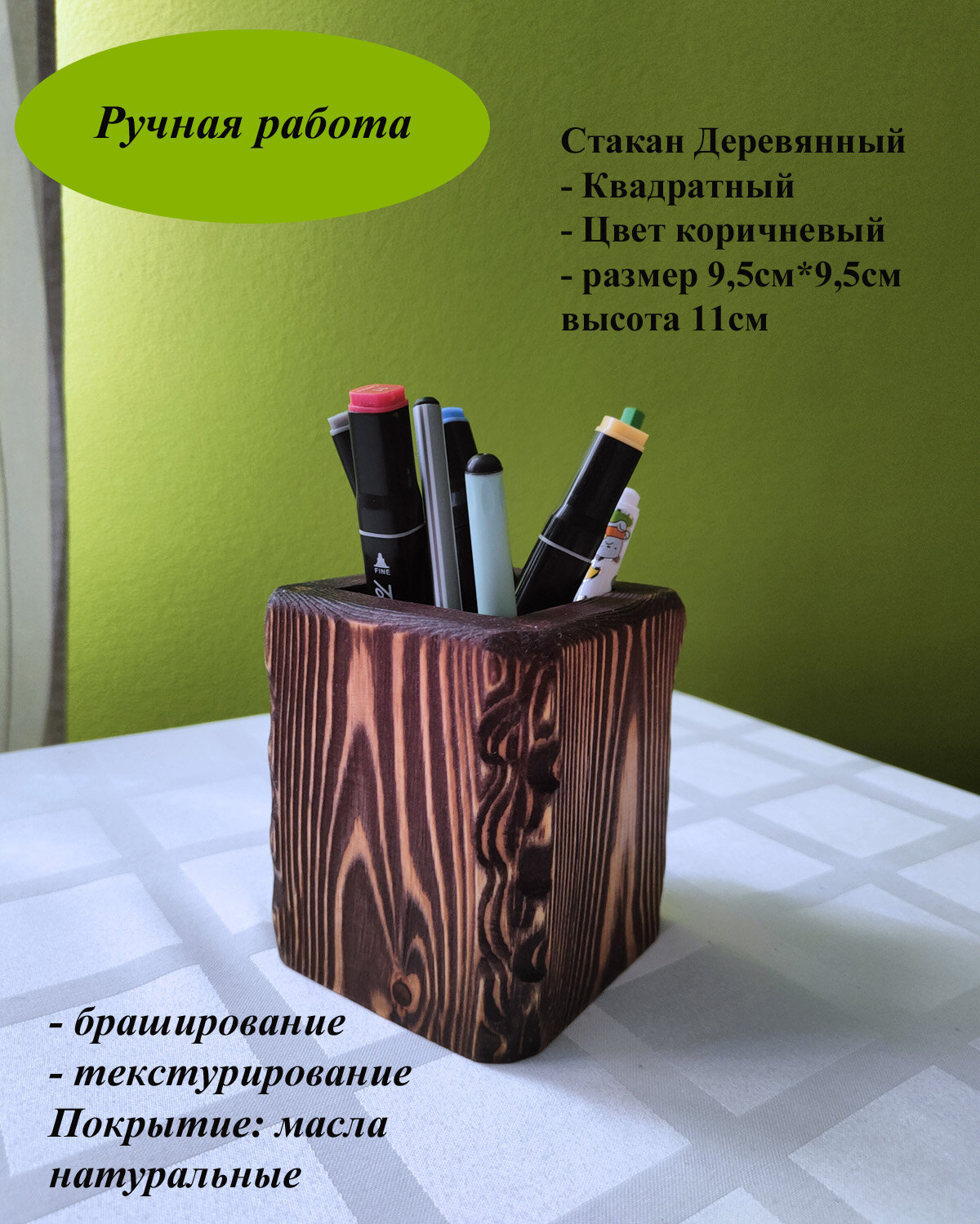 Подставка для канцелярских принадлежностей Квадратная цвет коричневый деревянная информация: