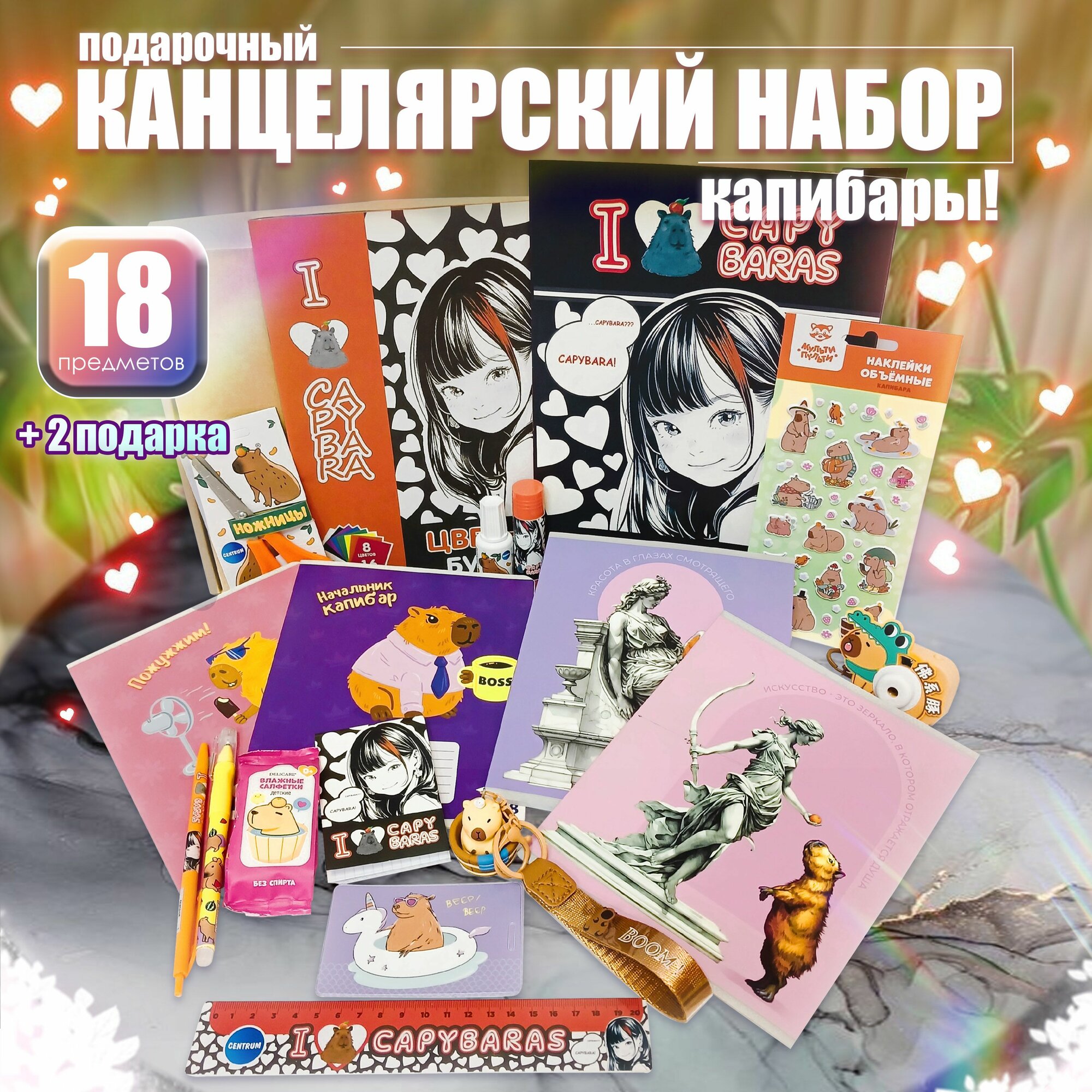 Отзывы на Набор канцелярии "чилль ПО капибарному!" 18+2 предметов, бокс письменных принадлежностей в подарочной коробке А4, канцелярский набор для школы (капибара)