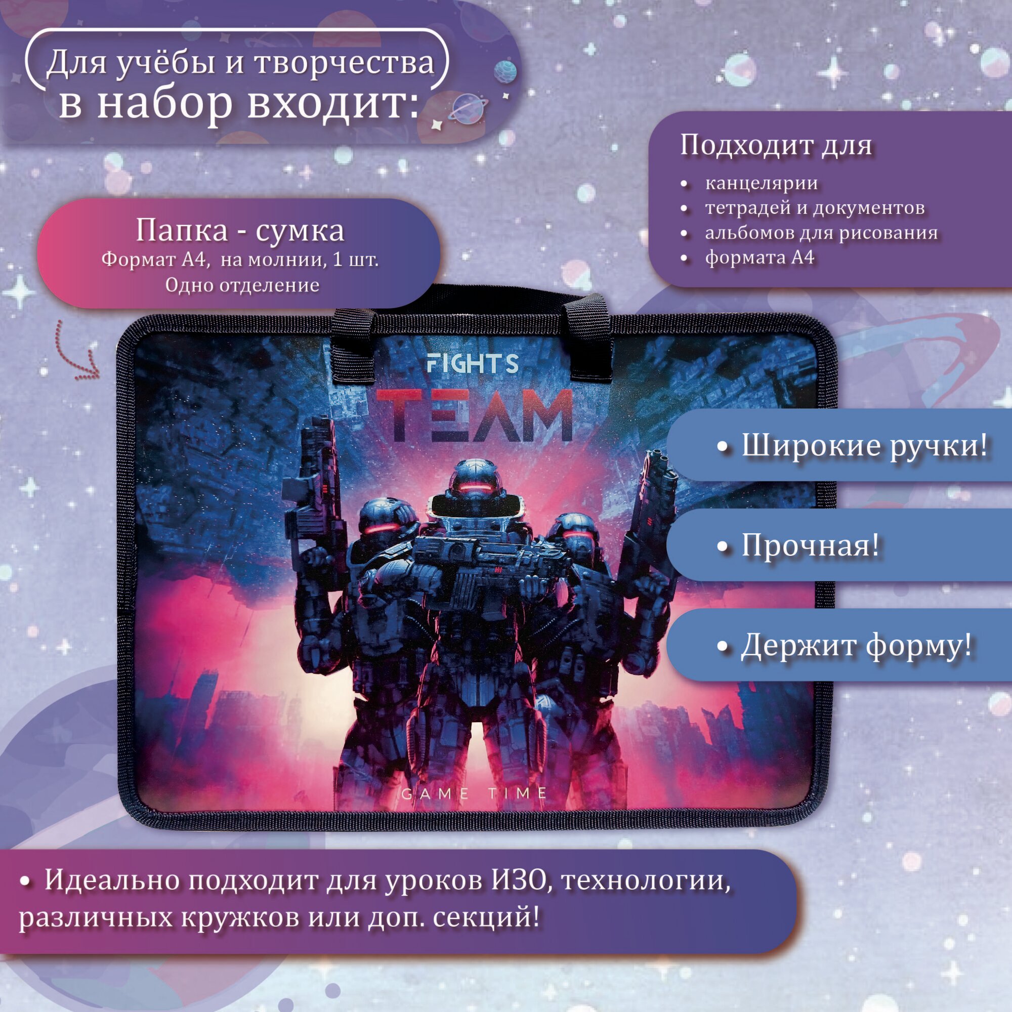 Набор для начальной школы, для мальчика 26 предметов "Кибервойны" в папке, набор школьных канцелярских принадлежностей информация:
