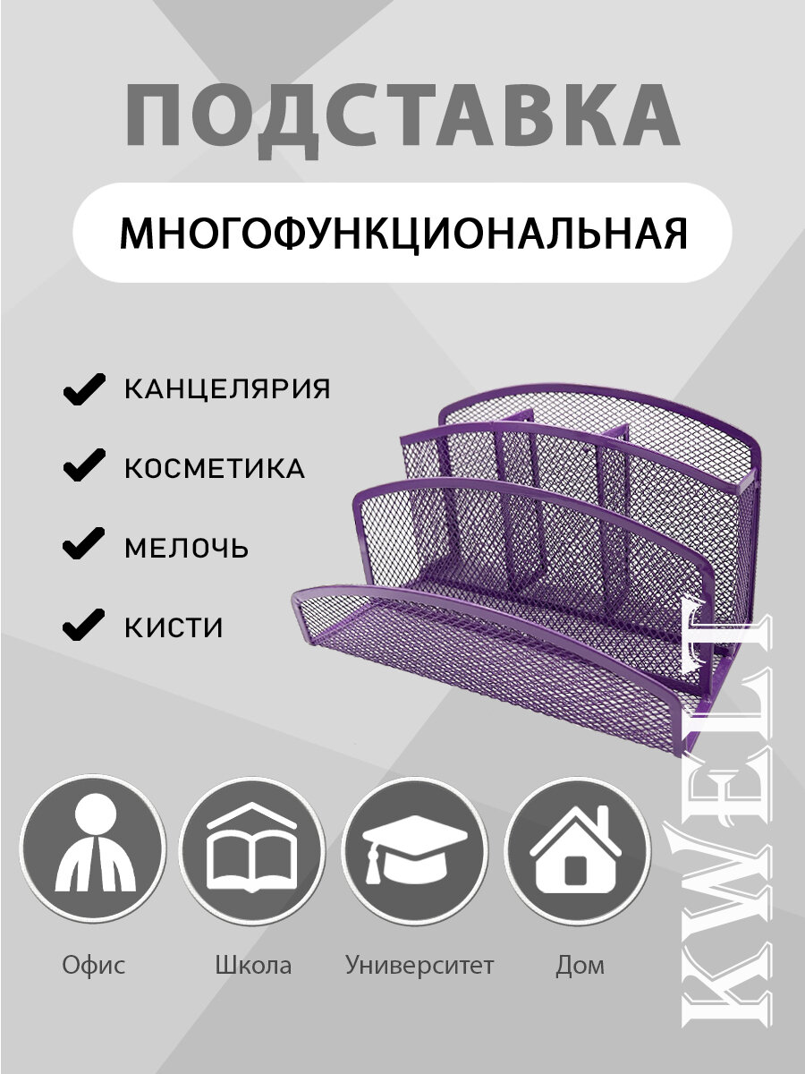 Отзывы на Подставка " KWELT " 5 отделений, 22*12*14см, металлическая, сетчатая, фиолетовая, картонная упаковка