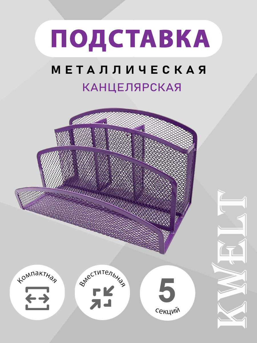 Подставка " KWELT " 5 отделений, 22*12*14см, металлическая, сетчатая, фиолетовая, картонная упаковка информация:
