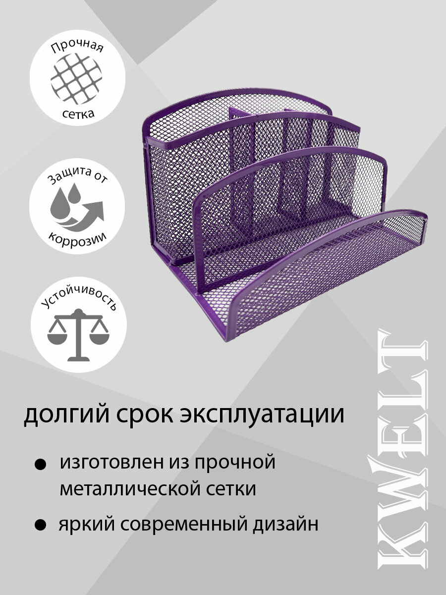 10 цен на Подставка " KWELT " 5 отделений, 22*12*14см, металлическая, сетчатая, фиолетовая, картонная упаковка