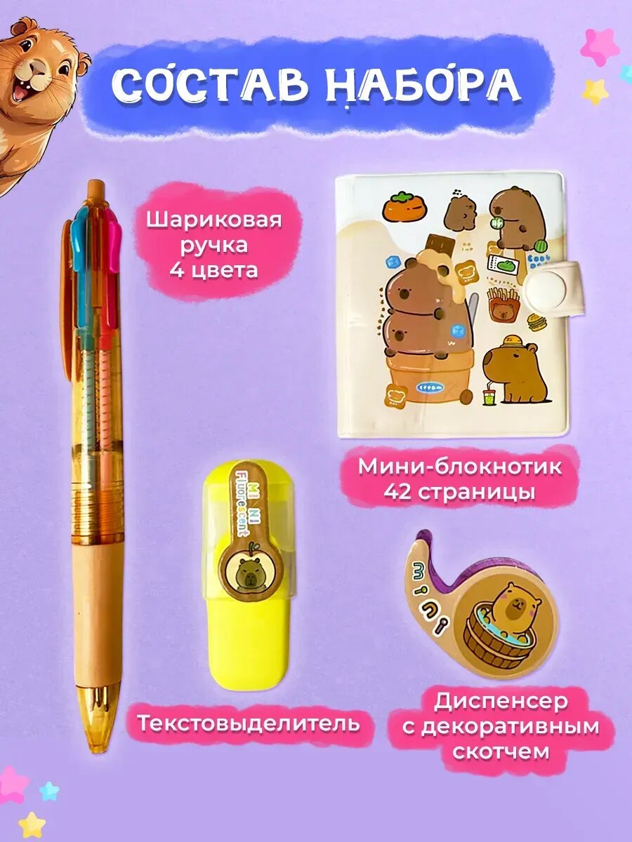 Набор канцелярии с Капибарой подарочный 4 предмета, 3 шт информация: