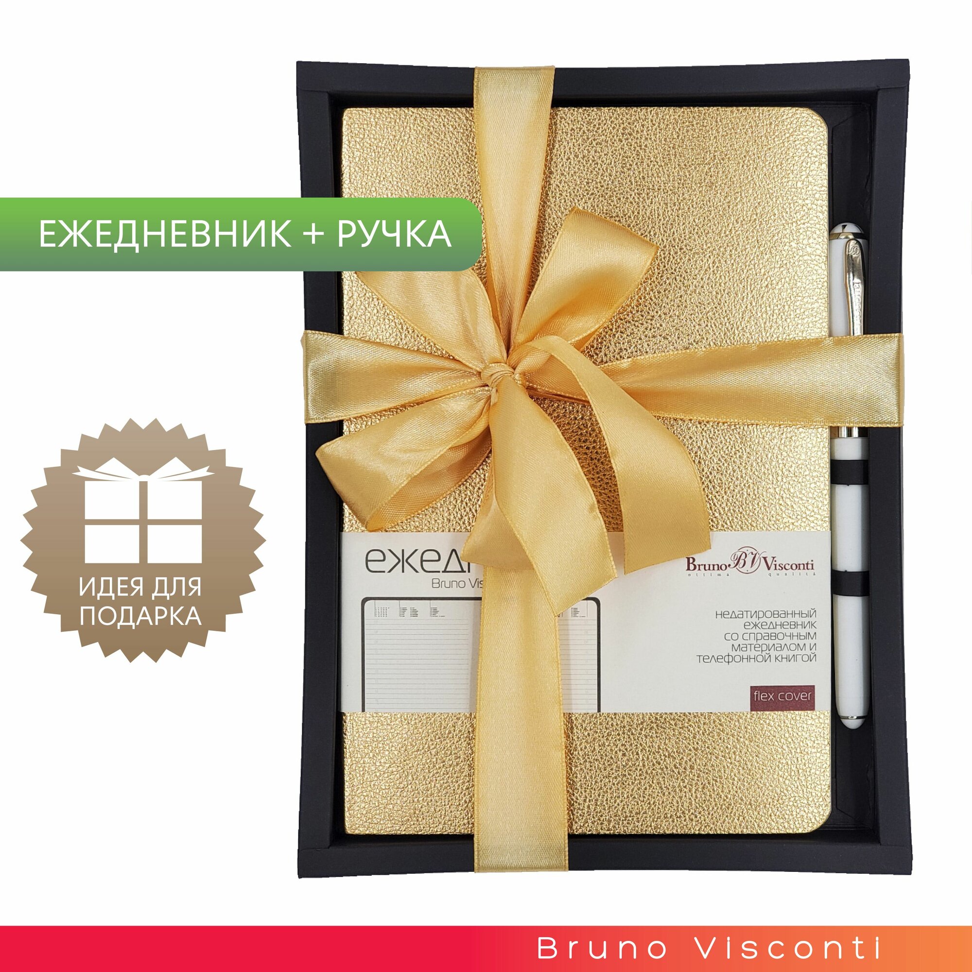 10 цен на Подарочный набор Bruno Visconti "MEGAPOLIS FLEX" ежедневник с ручкой шариковой / Блокнот для записей а5 золотой арт.3-531/50-2