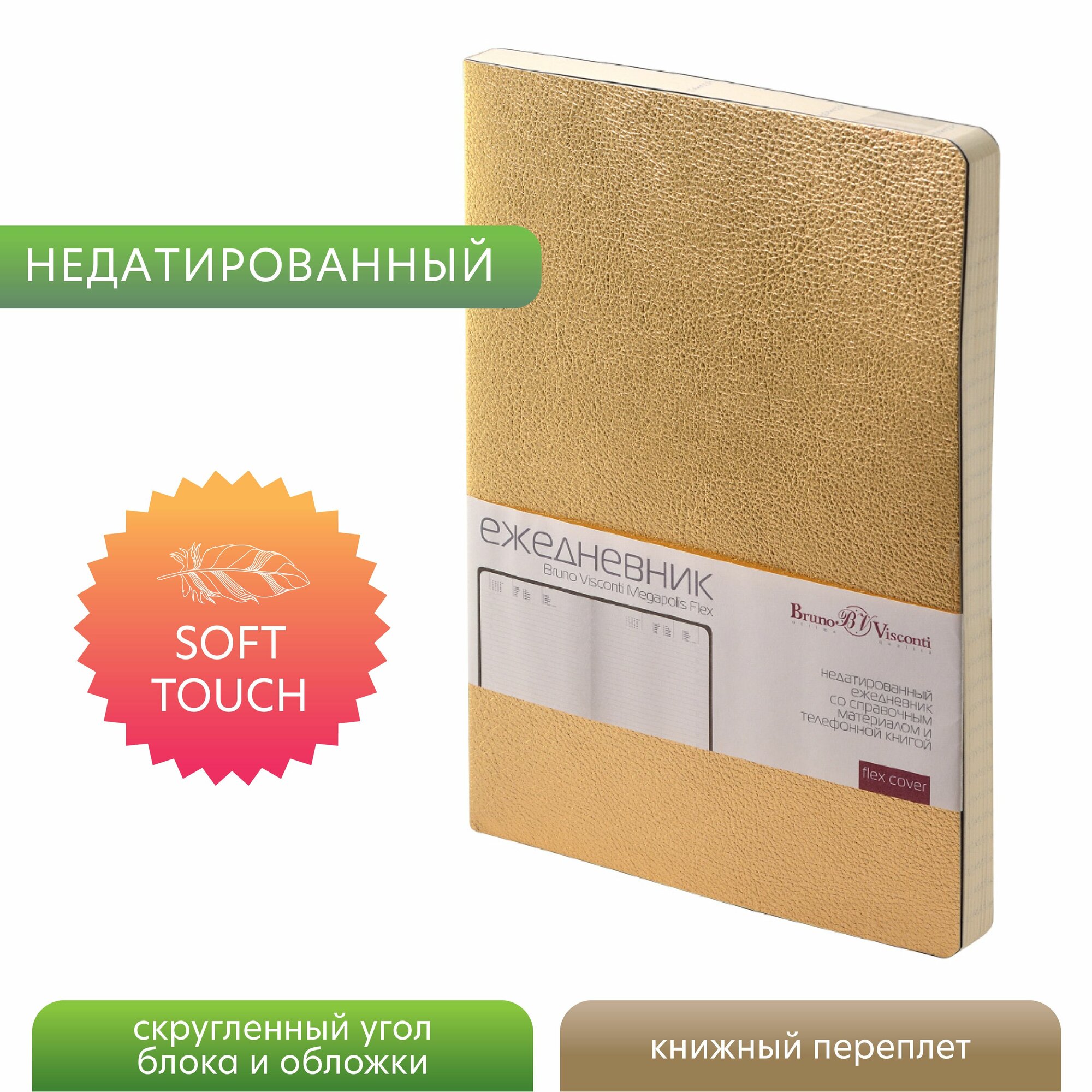 Отзывы на Подарочный набор Bruno Visconti "MEGAPOLIS FLEX" ежедневник с ручкой шариковой / Блокнот для записей а5 золотой арт.3-531/50-2
