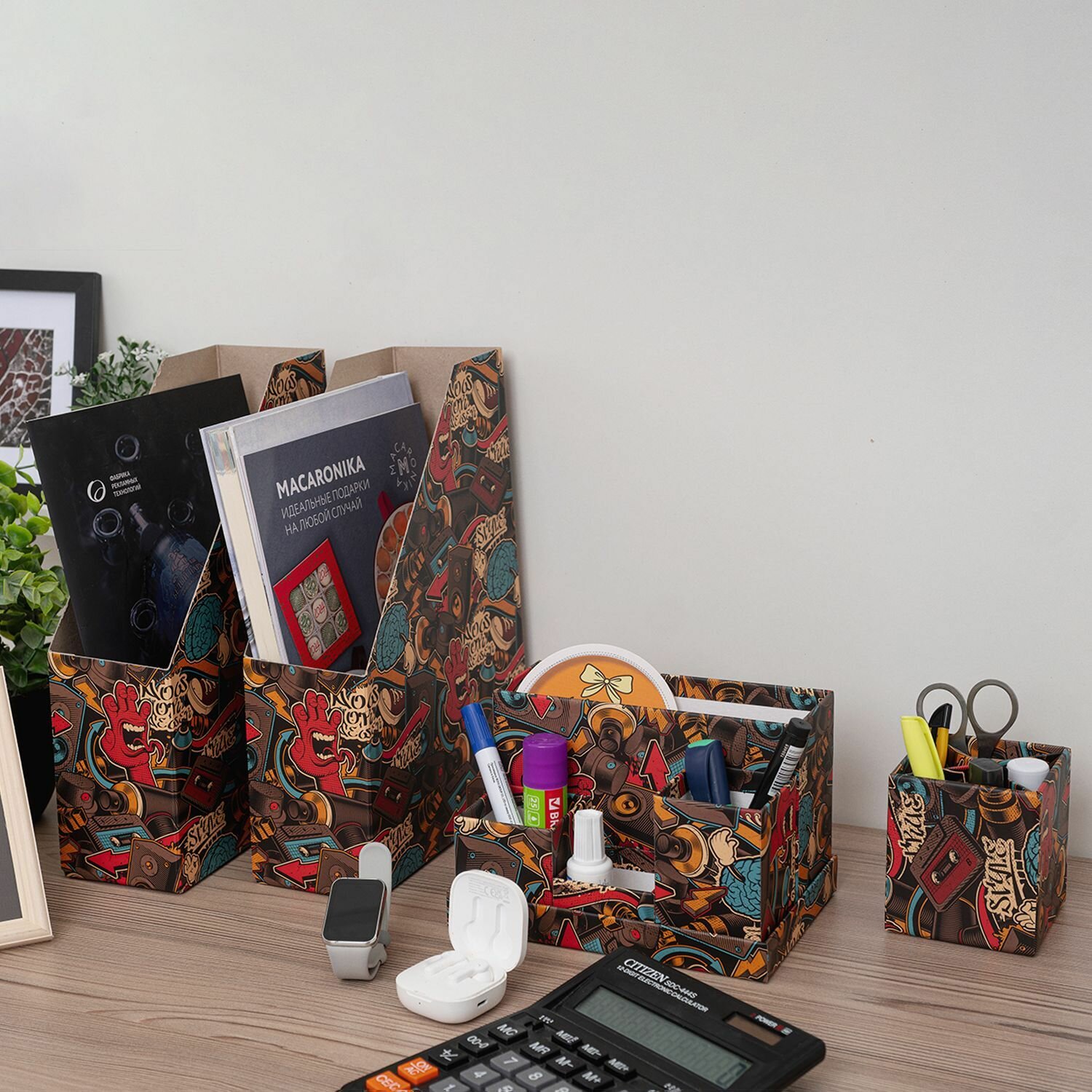 Набор канцелярских принадлежностей (вертикальный накопитель 2 шт, органайзер, подставка)Граффити информация: