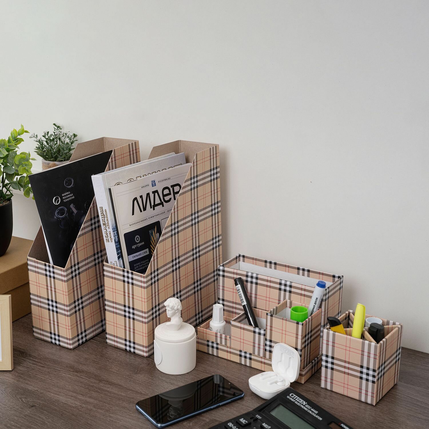 Набор канцелярских принадлежностей (вертикальный накопитель 2 шт, органайзер, подставка) Клетка информация:
