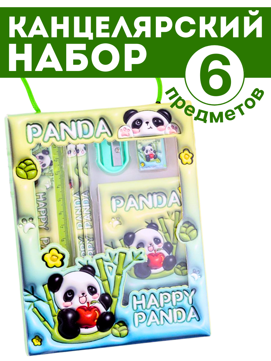 Канцелярский набор для девочек и мальчиков 6 предметов, панда информация: