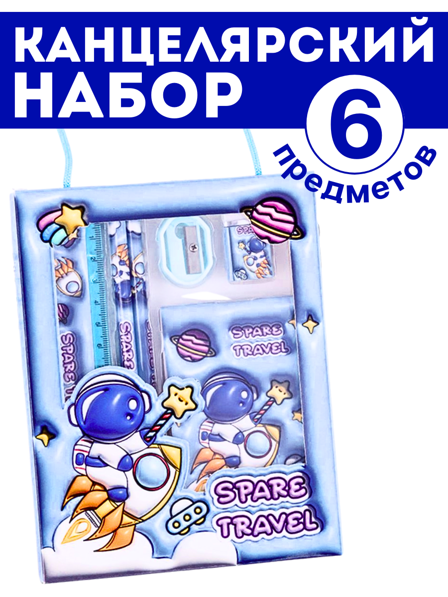 Канцелярский набор для девочек и мальчиков 6 предметов, космонавт информация: