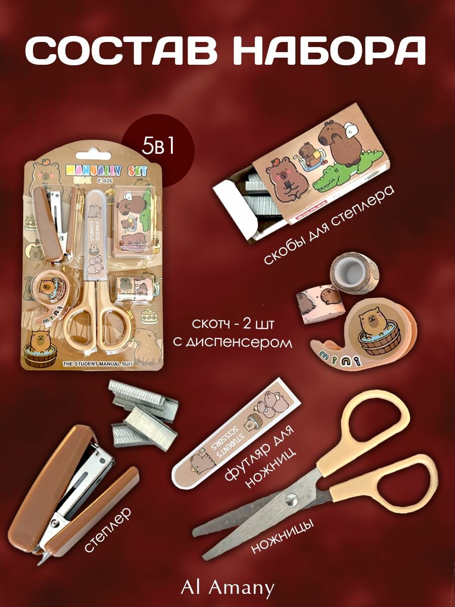 Подарочный набор канцелярии для школы капибара 105 предметов, школьные принадлежности, подарок выпускнику и первокласснику