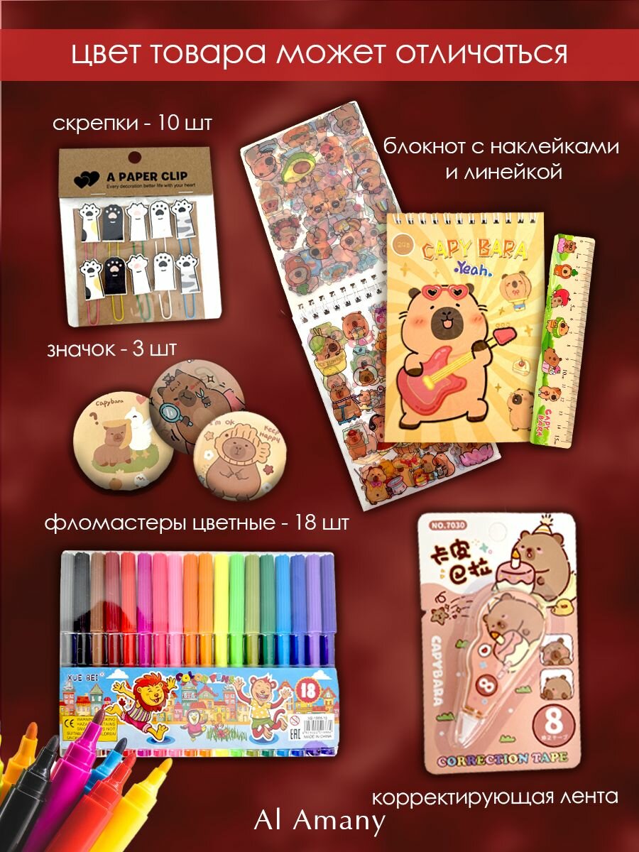 10 цен на Подарочный набор канцелярии для школы капибара 200 предметов, школьные принадлежности, подарок выпускнику и первокласснику