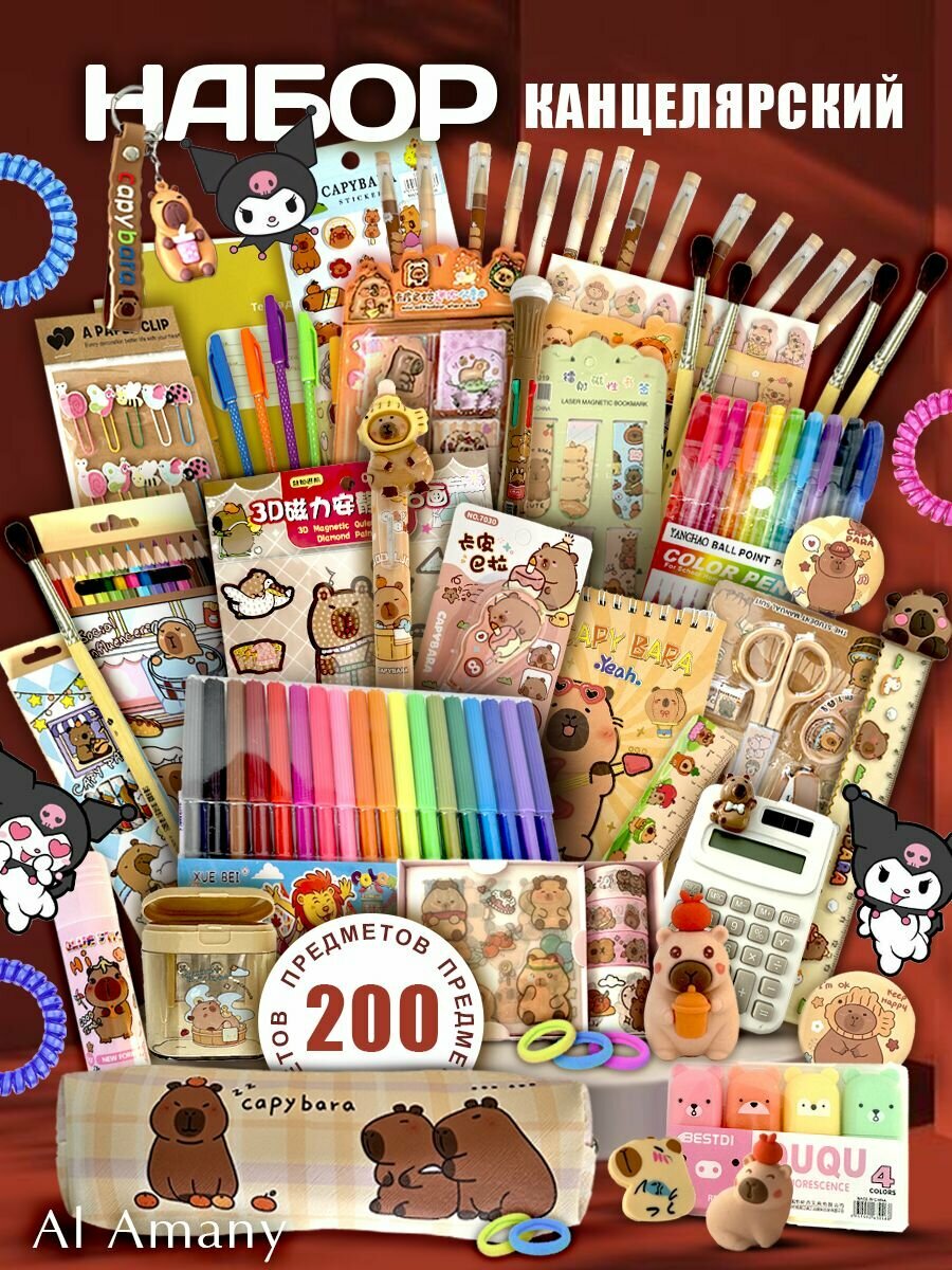 Подарочный набор канцелярии для школы капибара 200 предметов, школьные принадлежности, подарок выпускнику и первокласснику