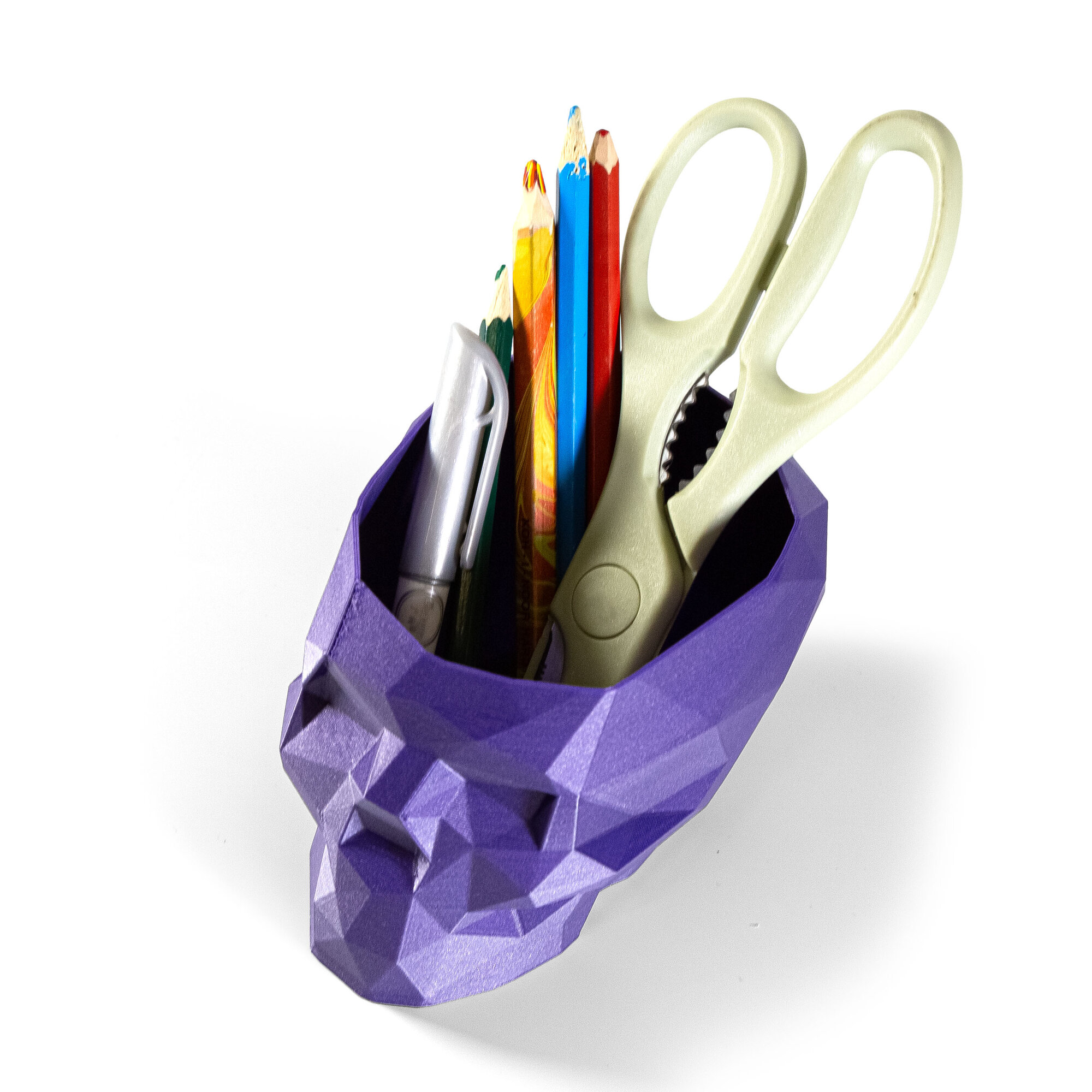 10 цен на Череп-Ваза для конфет/карандашей, полигональная, фиолетовая