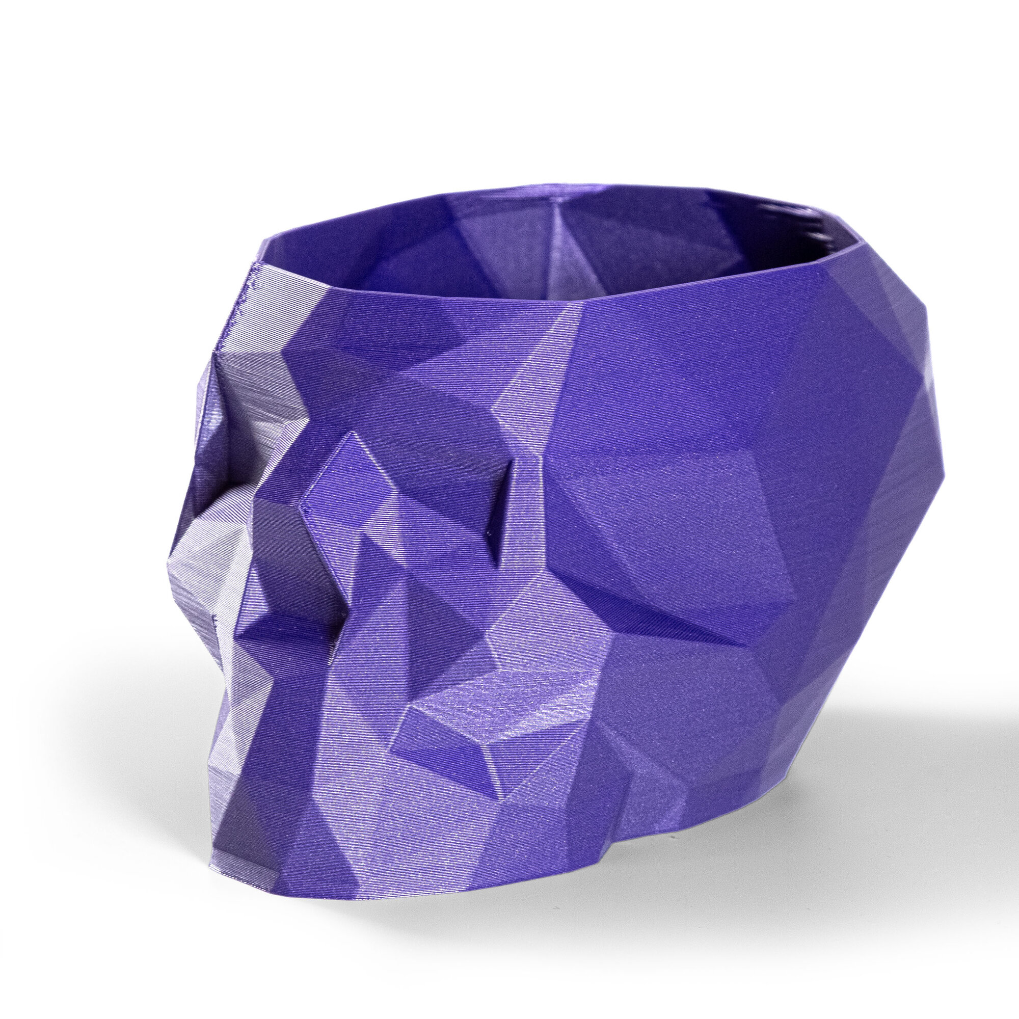 Череп-Ваза для конфет/карандашей, полигональная, фиолетовая информация: