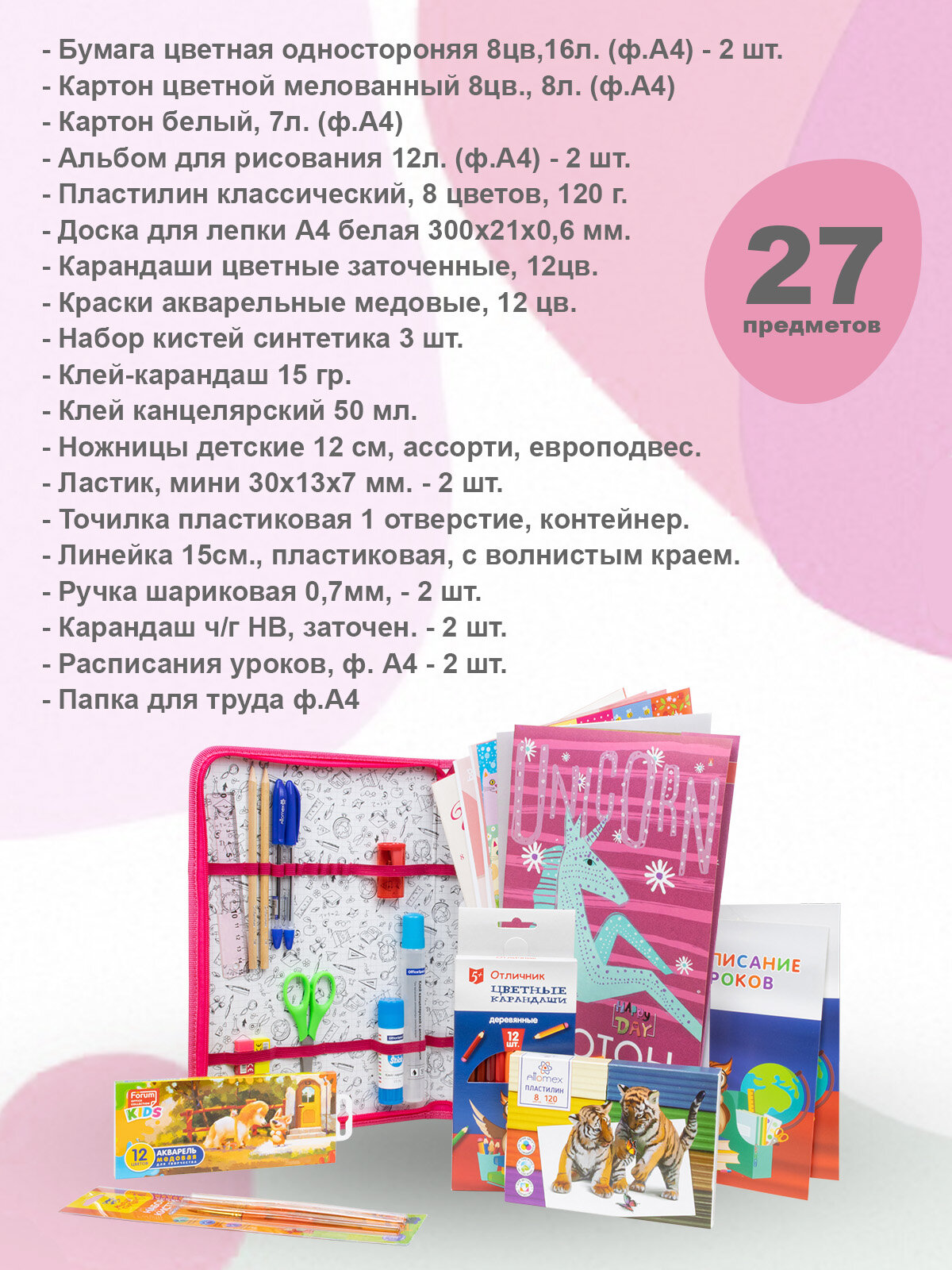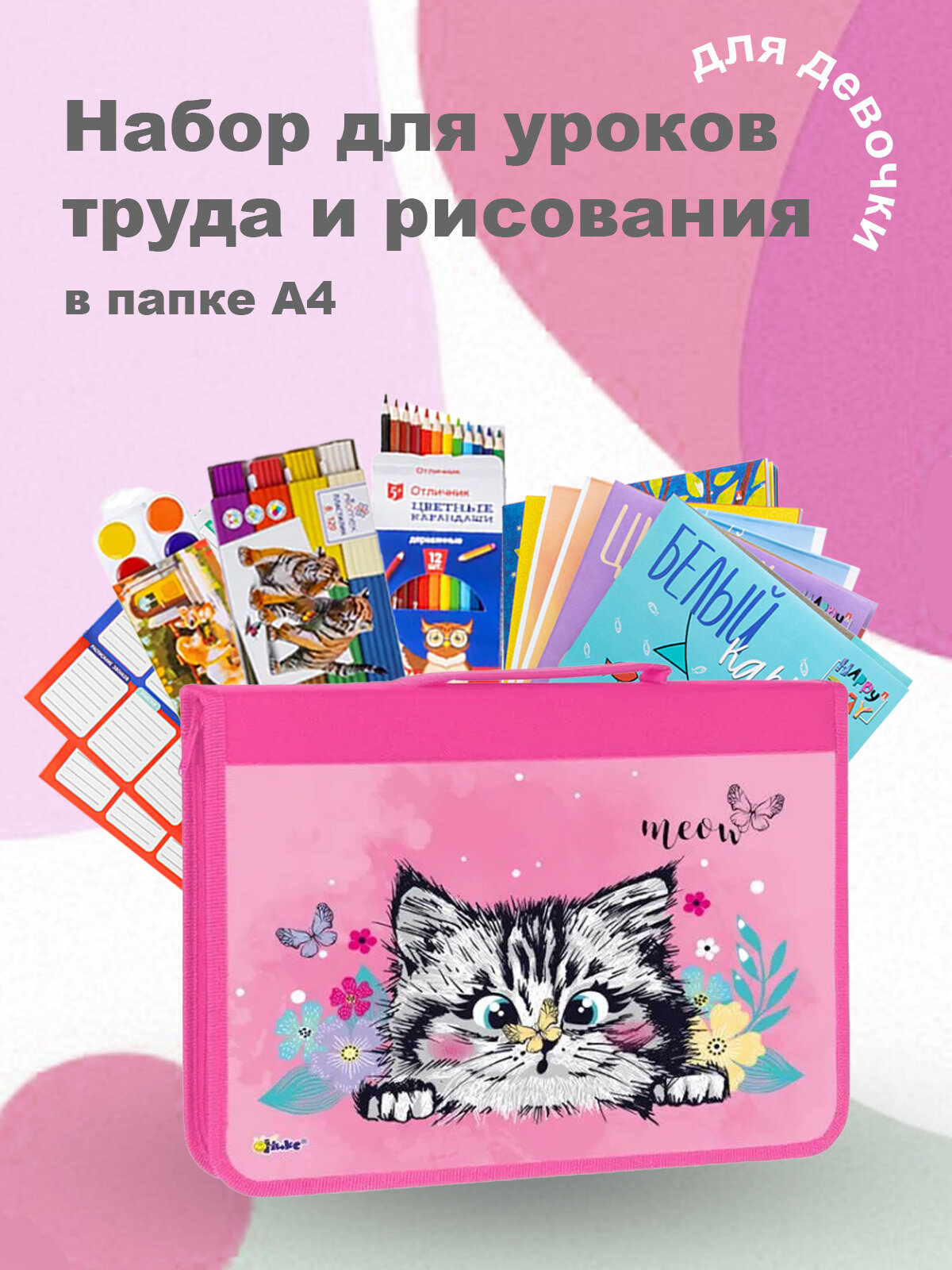 Набор "ОТЛИЧНИК" в папке А4 для уроков труда и рисования 27 предметов, девочке информация: